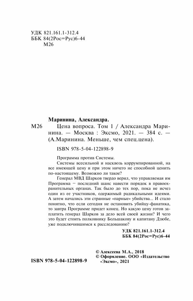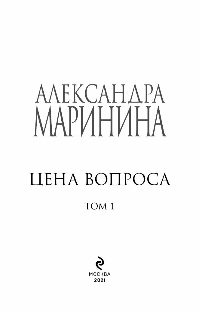 Книга: Цена вопроса. Том 1 (Маринина Александра Борисовна); ООО "Издательство "Эксмо", 2021