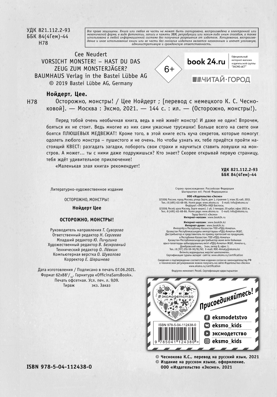 На сегодняшний день товар «Книга: Осторожно монстры! (Осторожно, монстры!); ООО "Издательство "Эксмо", 2021» можно купить с кешбеком в 5 магазинах: Буквоед, Яндекс.Маркет, Читай-город, book24, ЛитРес
