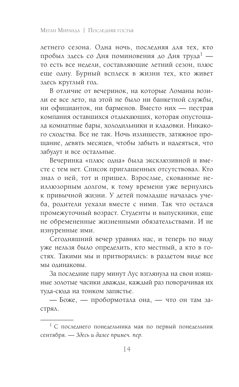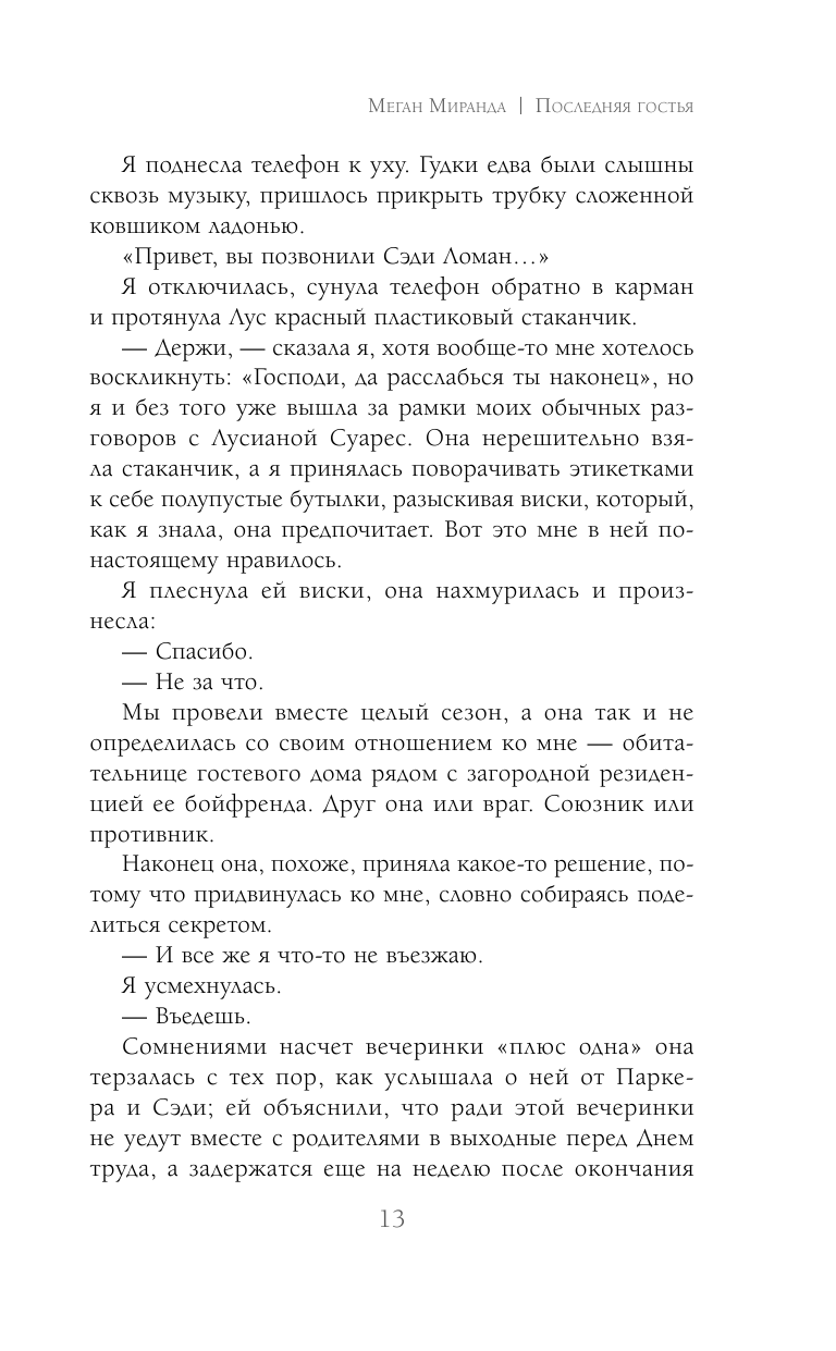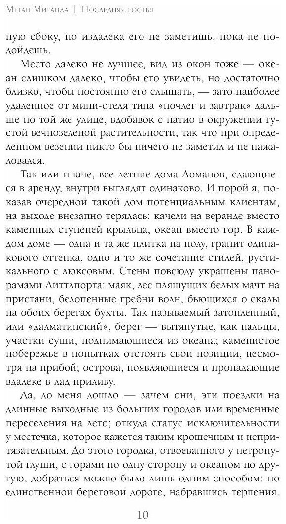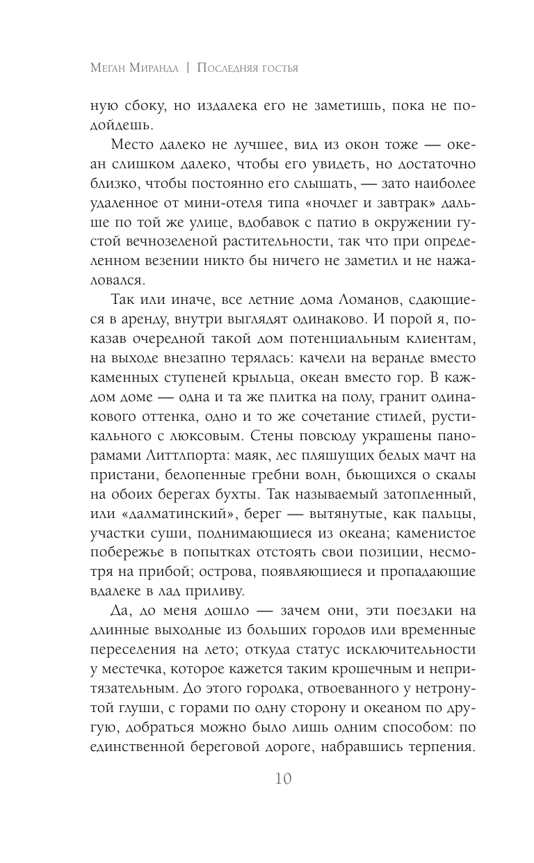 Меган Миранда верна себе - вновь легкое неспешное повествование, пронизанное тайной, когда разгадка по кусочкам достаётся из-под камешков, лежащих у моря. Однако книга не заполучила меня к себе в руки. Эффекта вау не было, просто неплохо.