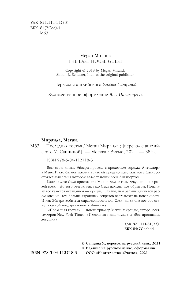Книга: Последняя гостья (Миранда Меган); INSPIRIA, 2021