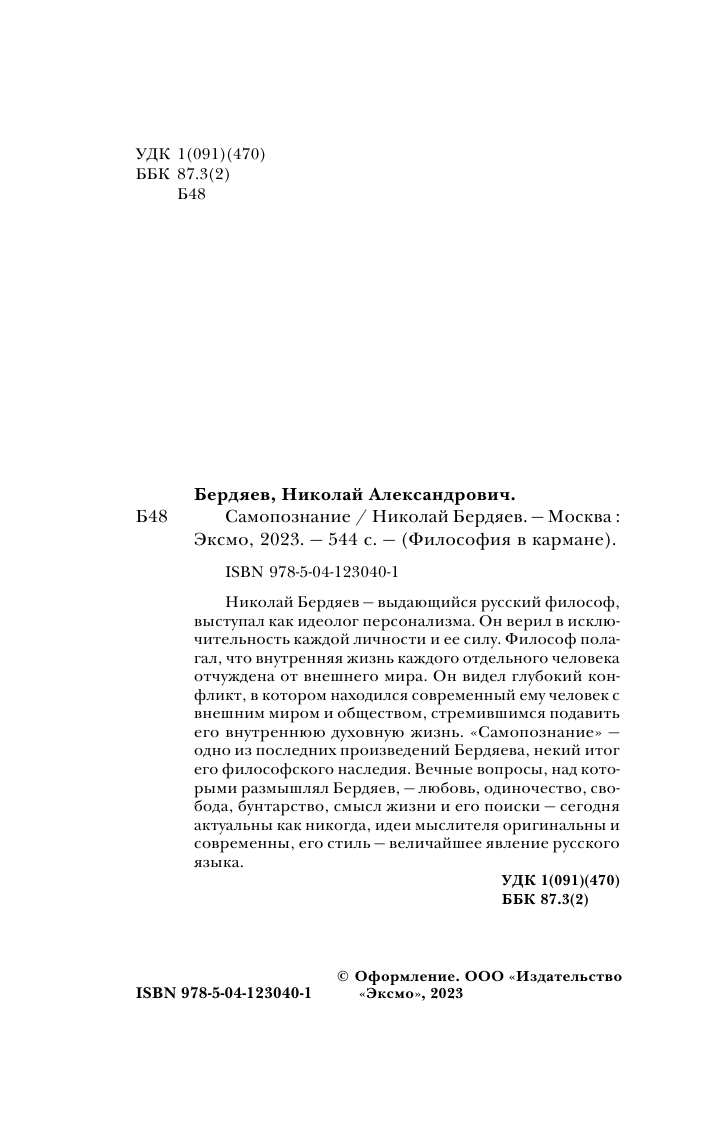 Книга: Самопознание (Бердяев Николай Александрович); ООО "Издательство "Эксмо", 2021
