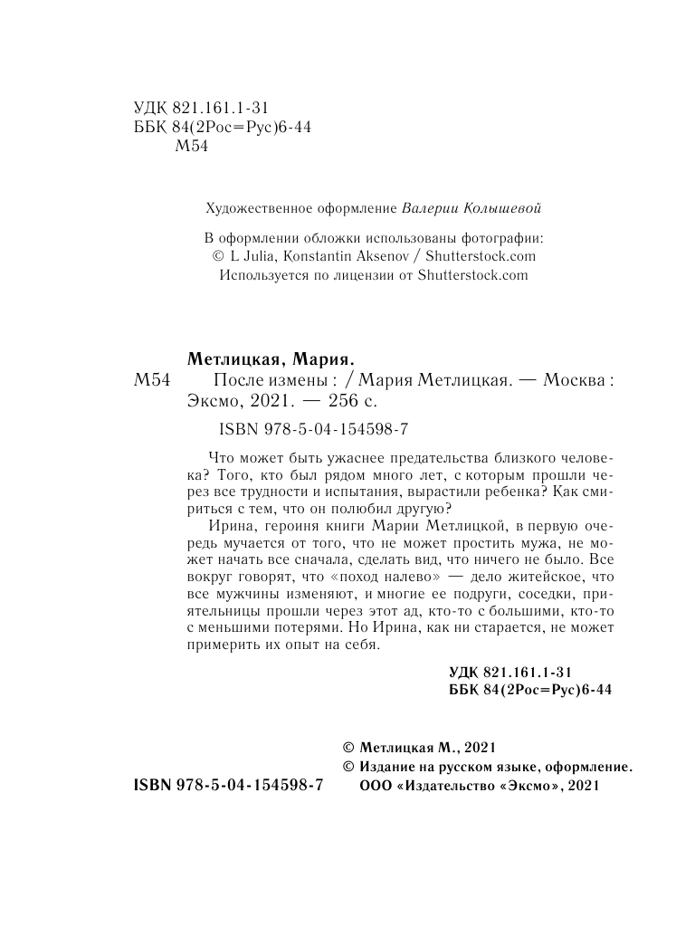 Книга: После измены (Мария Метлицкая); Эксмо, Редакция 1, 2021