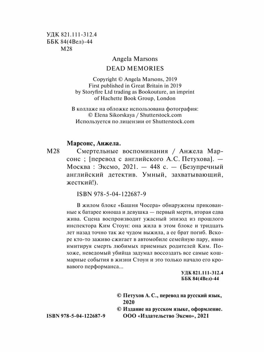 Книга: Смертельные воспоминания (Анжела Марсонс); Эксмо, Редакция 1, 2021