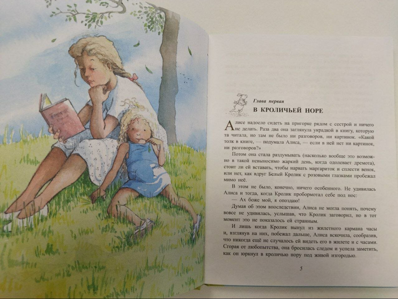 Идём ловить Алису, весёлую Алису, красивую Алису, нам не скучно ничуть! Это третья Алиса в домашней коллекции, и, боюсь, не последняя. Ничего не могу с собой поделать, если вижу что-то особенное про Алису - беру. Эта книга проиллюстрирована именитым художником Хелен Оксенбери. Рисунки отличаются какой-то озорной нежностью: очень трогательные, но не слащавые. Пролистав книгу в магазине, уже не смогла заставить себя вернуть её на полку. Только дома поняла, почему рисунки показались знакомыми - "Идем ловить медведя" - вот где я уже встречала этого художника! Что могу сказать: именно благодаря рисункам эта непростая книга воспринимается легче. По крайней мере, сын из всех вариантов выбрал для чтения именно этот...Формат удобный, шрифт комфортный. Очень, очень удачный вариант Алисы.