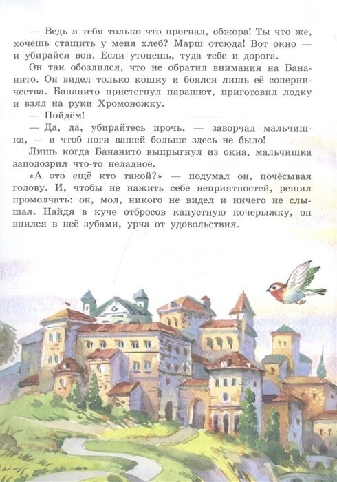 Книга небольшого формата, удобно брать в дорогу. Очень люблю иллюстрации В.Канивца, в этой книге они поскромнее, чем в книге С. Прокофьевой «Приключения желтого чемоданчика», но тоже очень интересные. Герой все прорисованы с эмоциями, с узнаванием сюжета. Много разворотов и без иллюстраций. Хоть и очень старое произведение, но читается легко, лет с 8 для детей будет интересно. Имена героев выговариваются легко, хоть и на итальянский манер: Джакомон, Ромолетта, Барони, Бананито или просто кошка Хромоножка. Книга понравилась, советую к покупке пока есть скидки!
