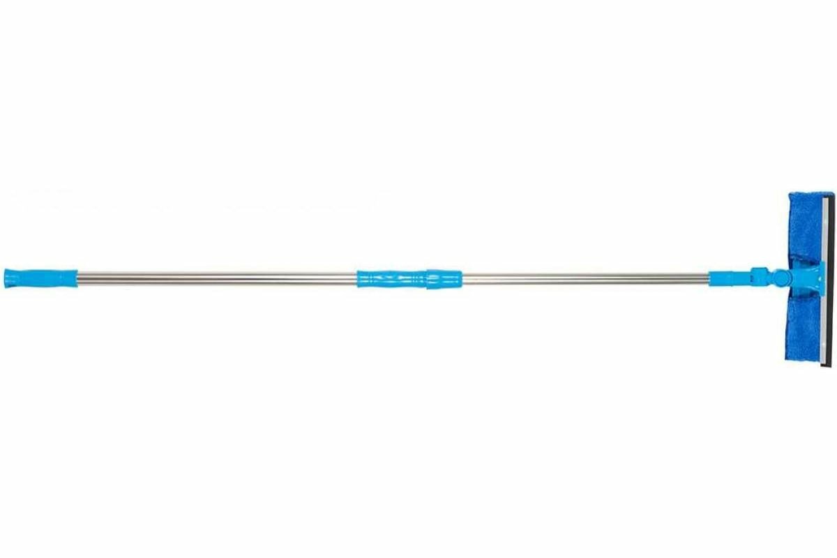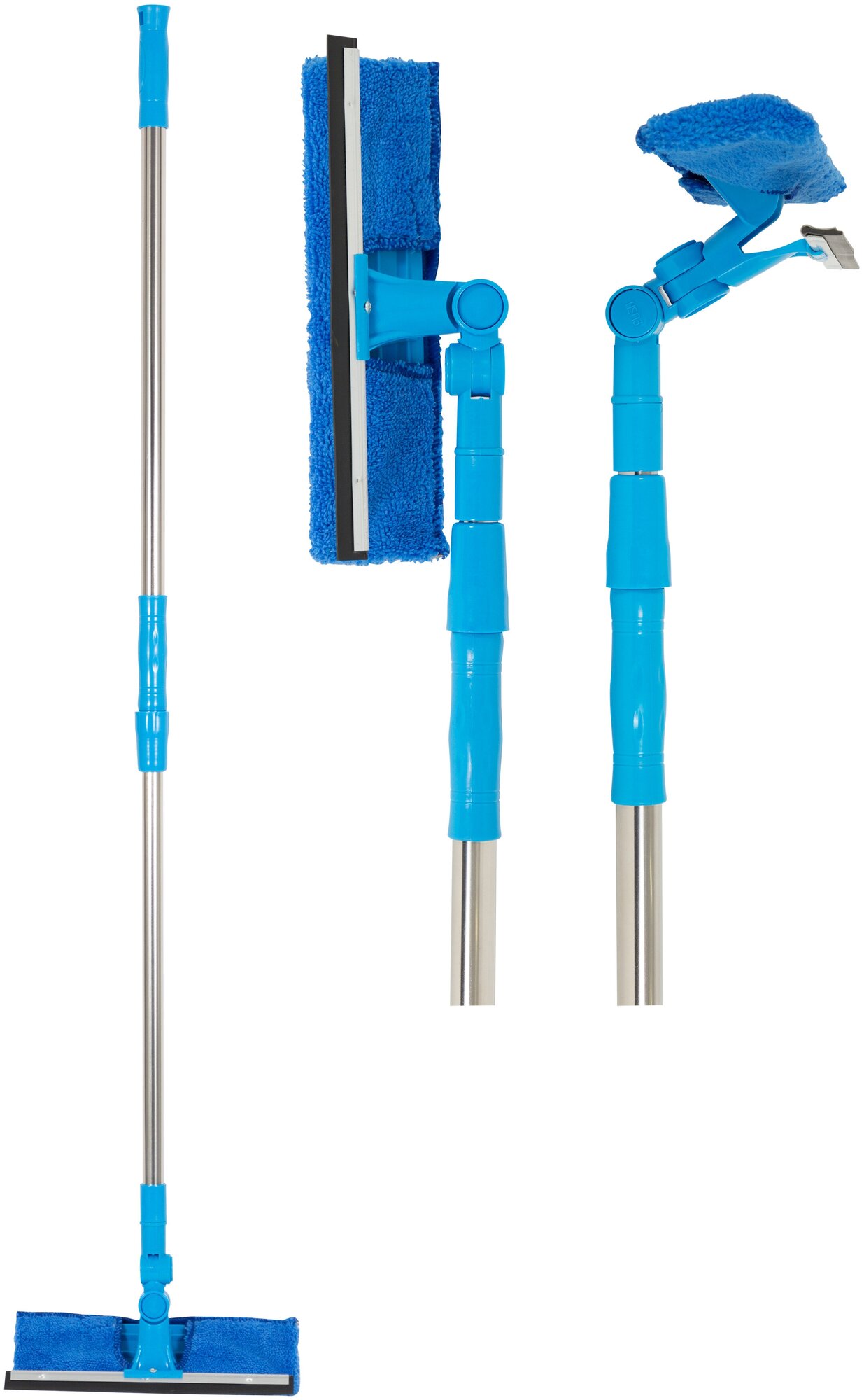 Можно изменять угол наклона насадки. 2 в 1: водосгон и стекломой. Не оставляет разводов. Благодаря шарнирному механизму насадку можно вращать в двух диапазонах. Длинная телескопическая рукоятка до 120 см позволяет использовать стекломой практически для любых балконов, лоджий и эркеров сложных форм. Насадка из микрофибры хорошо впитывает влагу и не оставляет разводов. При хранении стекломой занимает мало места.