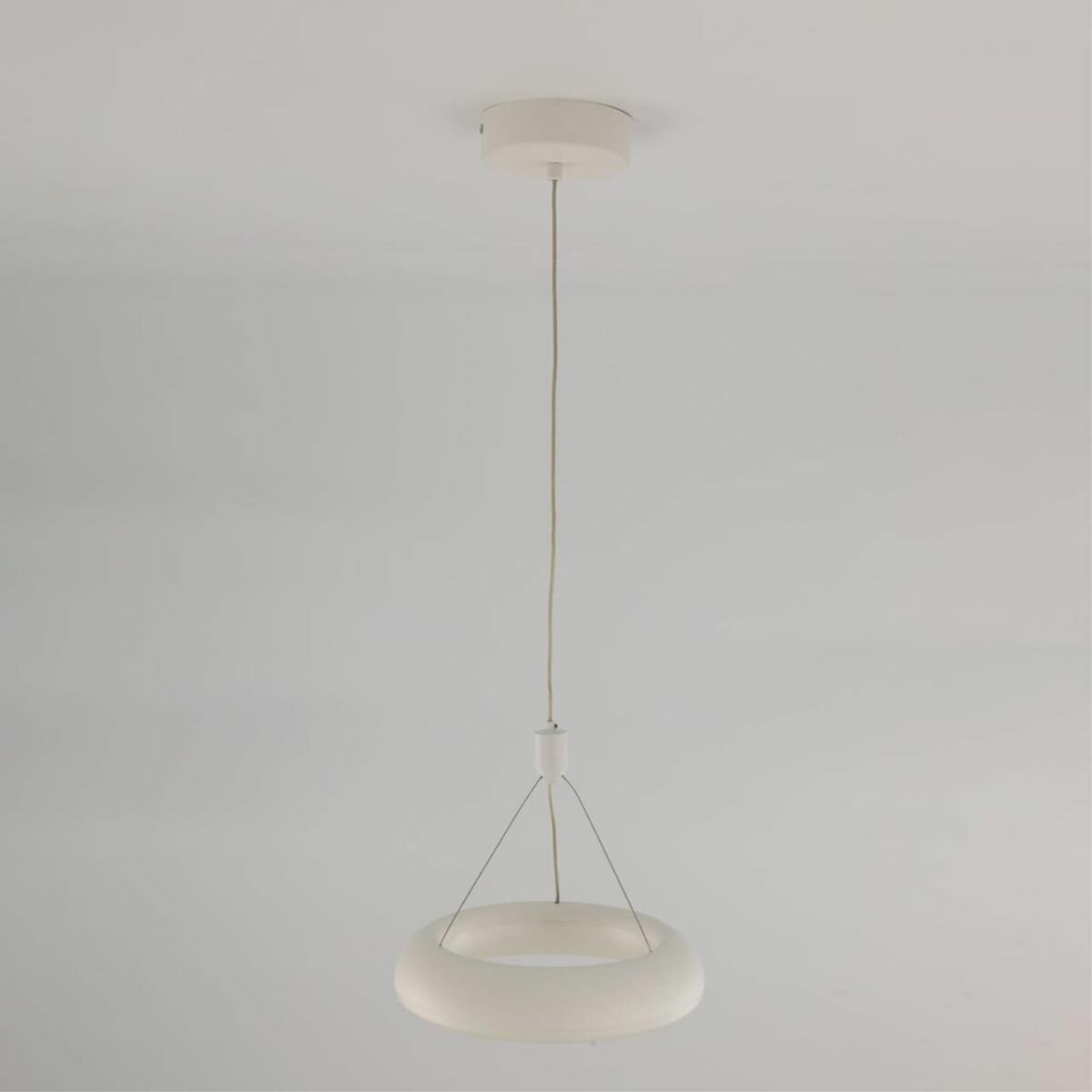 Потолочный подвесной светильник Паркер — это функциональная деталь интерьера и элегантное минималистичное украшение. Он крепится на длинном шнуре к потолку и при включении образует замкнутую светящуюся полосу света. Аксессуар изготовлен из полимерного материала и весит менее килограмма.