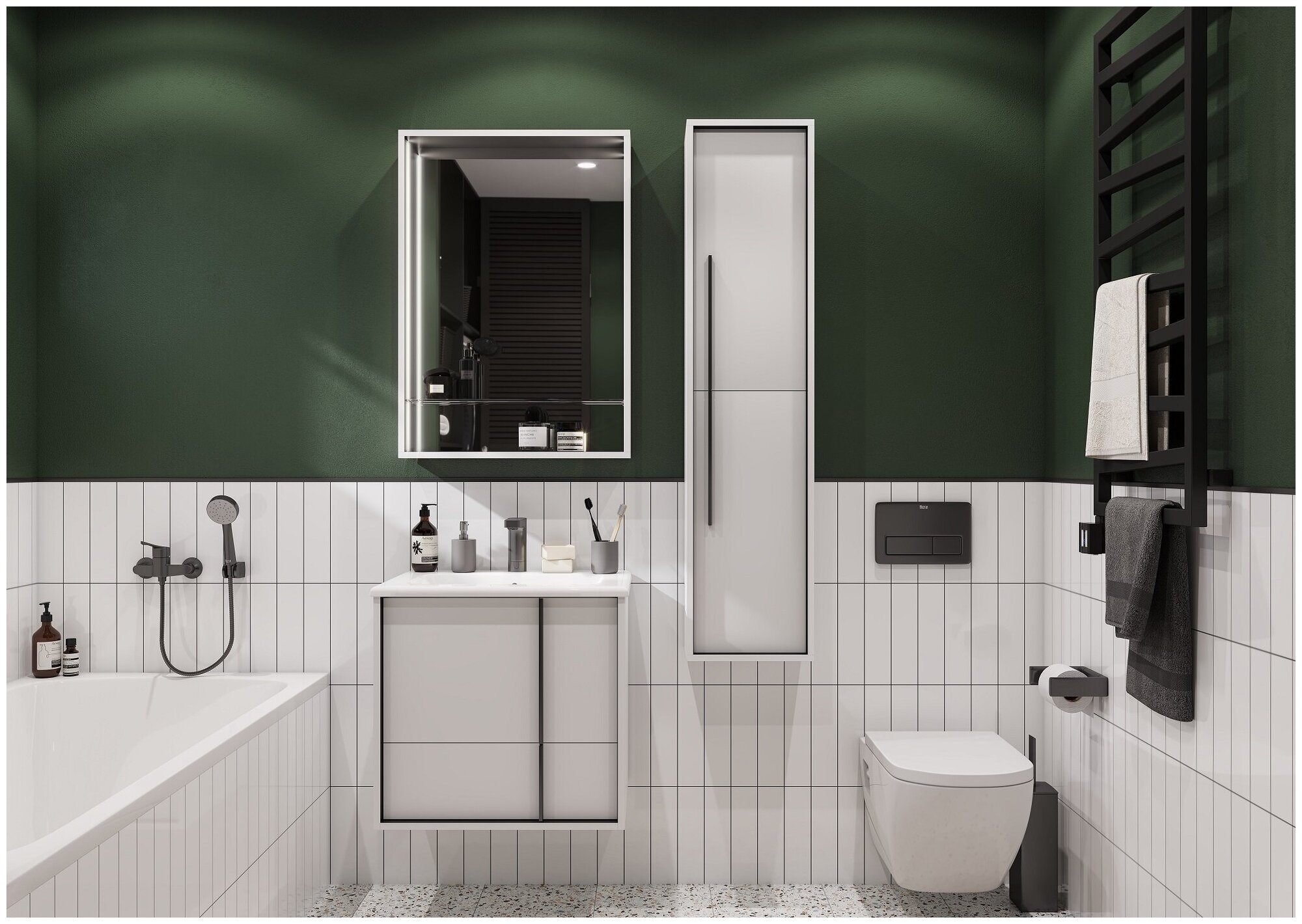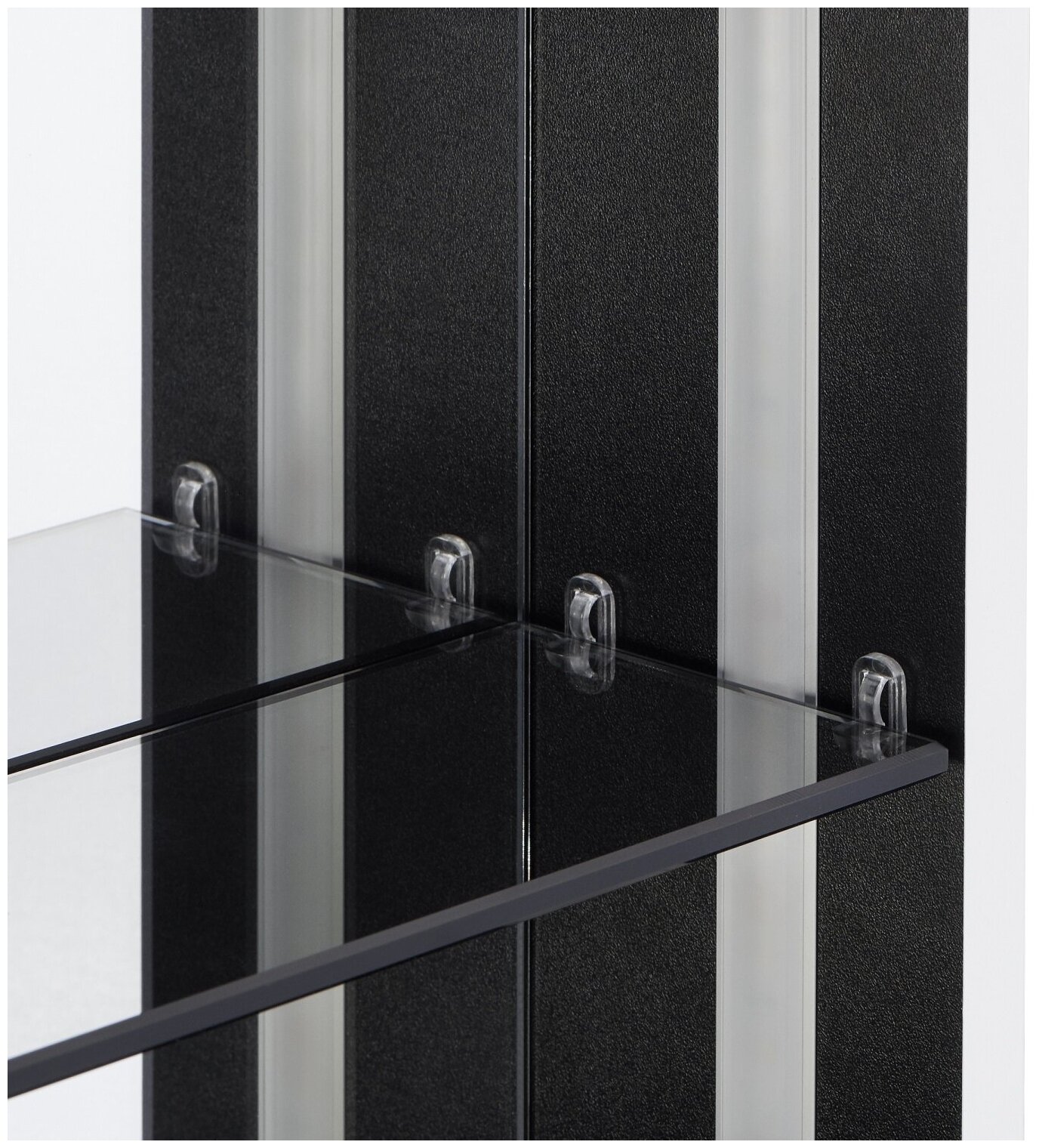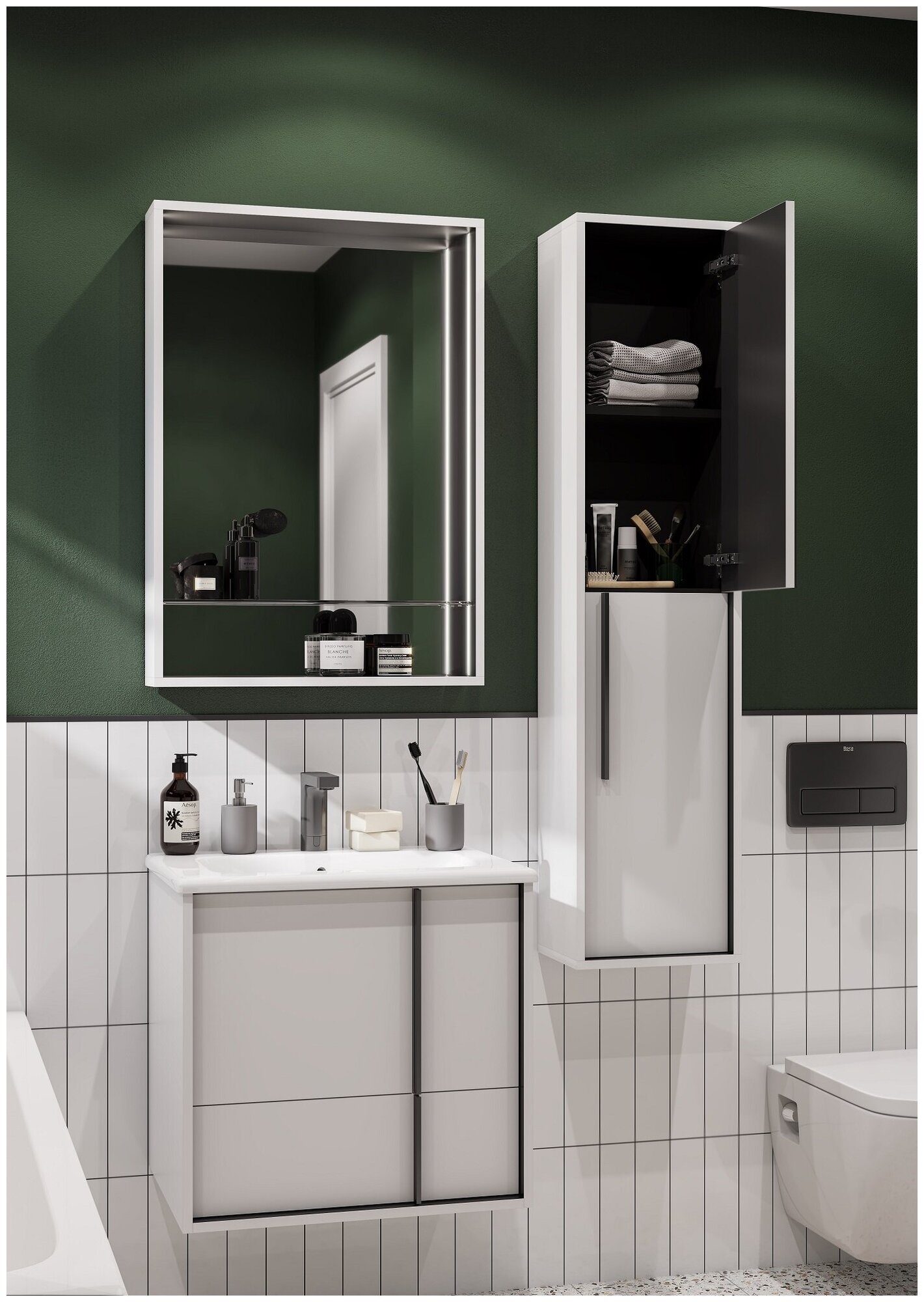 Зеркало шкаф Ривьера 60. Корпус: черная МДФ в белой матовой пленке. LED подсветка. Комплектация: полка из темного стекла