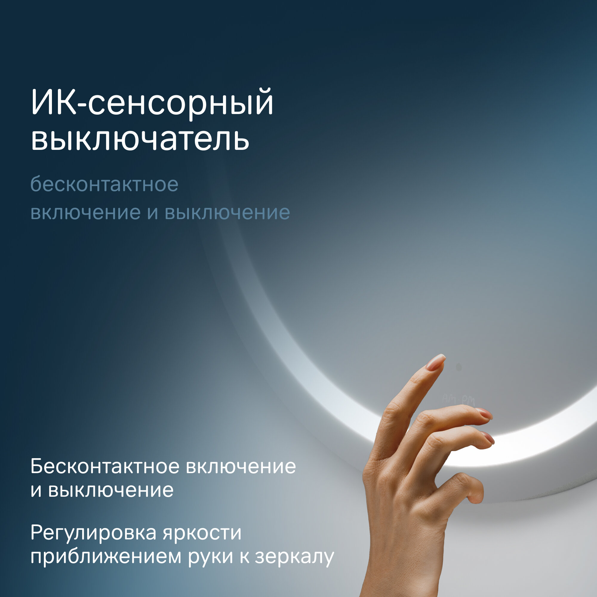 Зеркало Am.Pm X-Joy 65 с подсветкой. Ультрамодный универсальный дизайн зеркал от собственной студии дизайна AM.PM Design подойдет к интерьеру любой ванной комнаты. Яркая контурная LED-подсветка обеспечивает отличное рассеянное освещение и отсутствие теней. Срок службы светодиодов составляет более 30 000 часов. Сенсорный выключатель Touchless – никаких отпечатков на зеркальном полотне! Свет включается легким взмахом руки, функция диммирования позволяет регулировать яркость жестом.