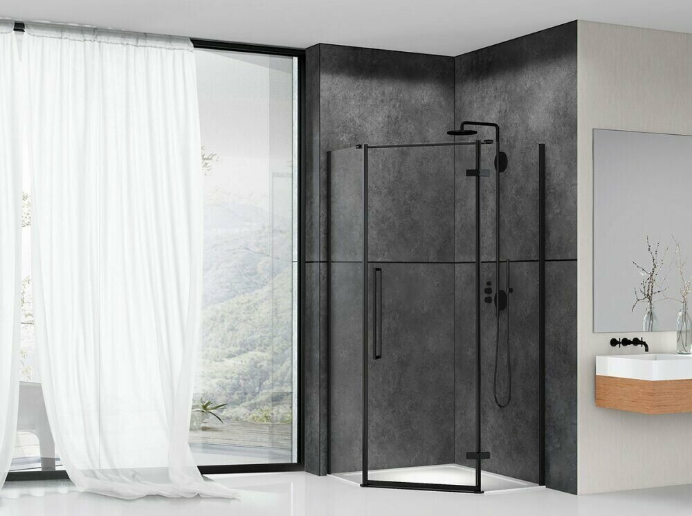 Душевой уголок Abber 80х80 AG05080B профиль Черный стекло прозрачное