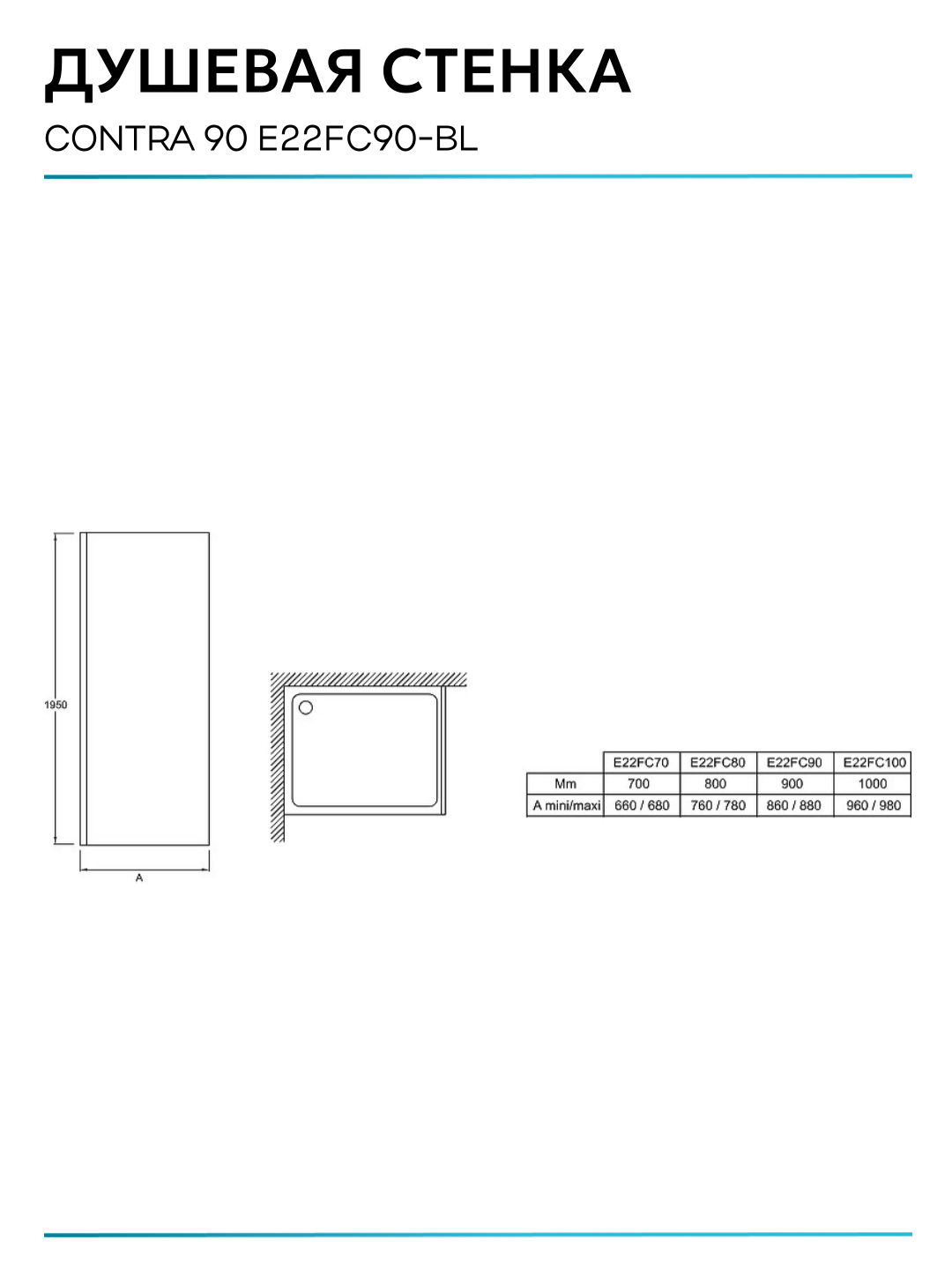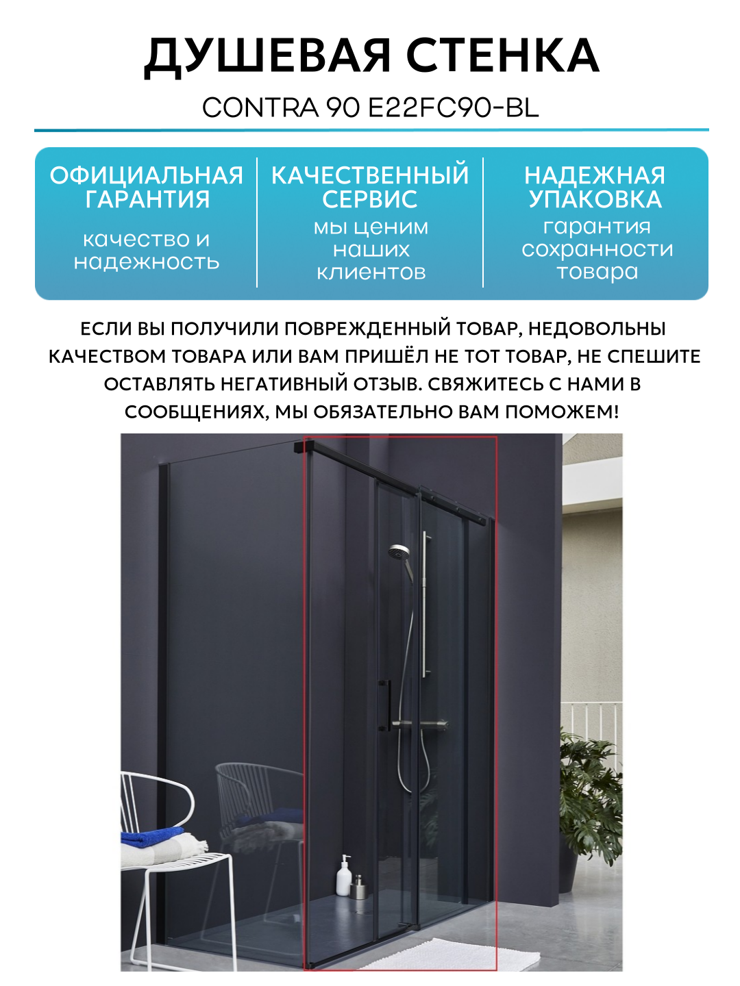 Модель: Contra 90 E22FC90-BL профиль Черный матовый стекло прозрачное
