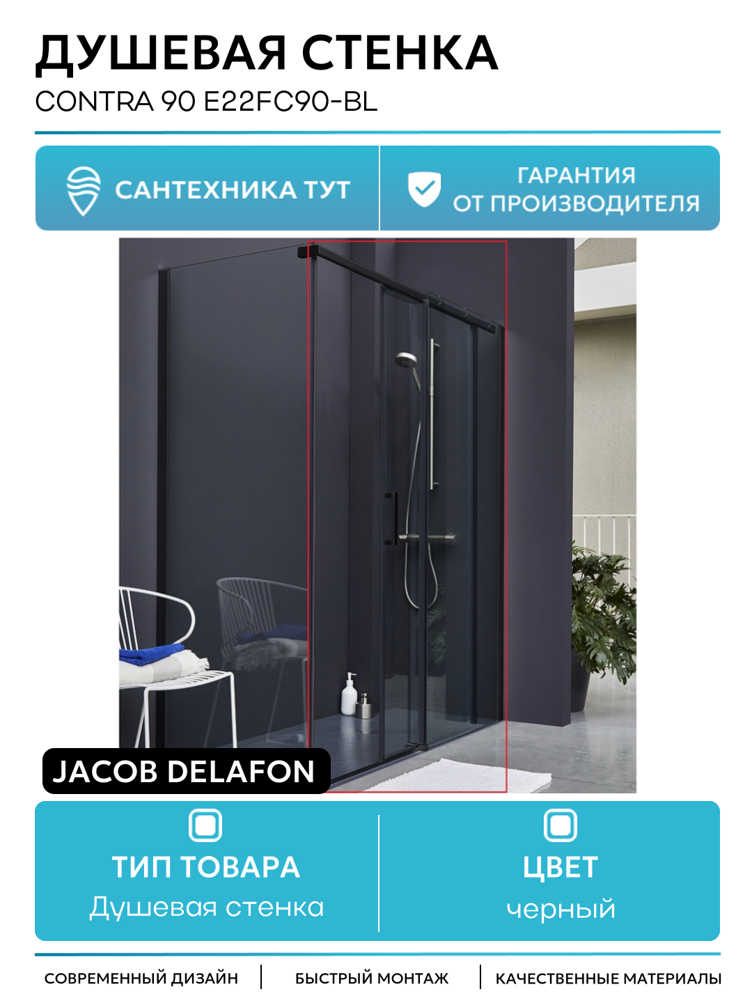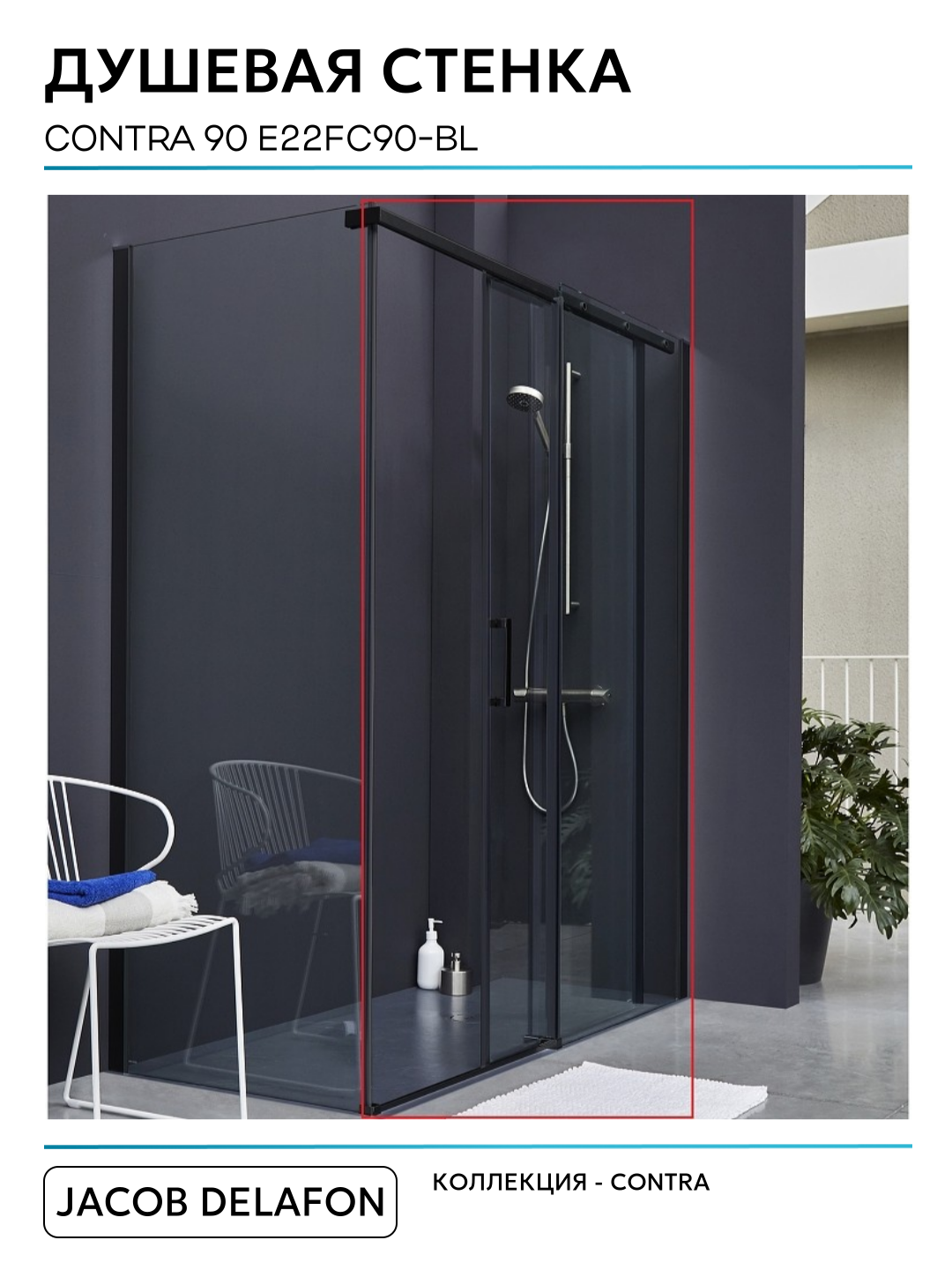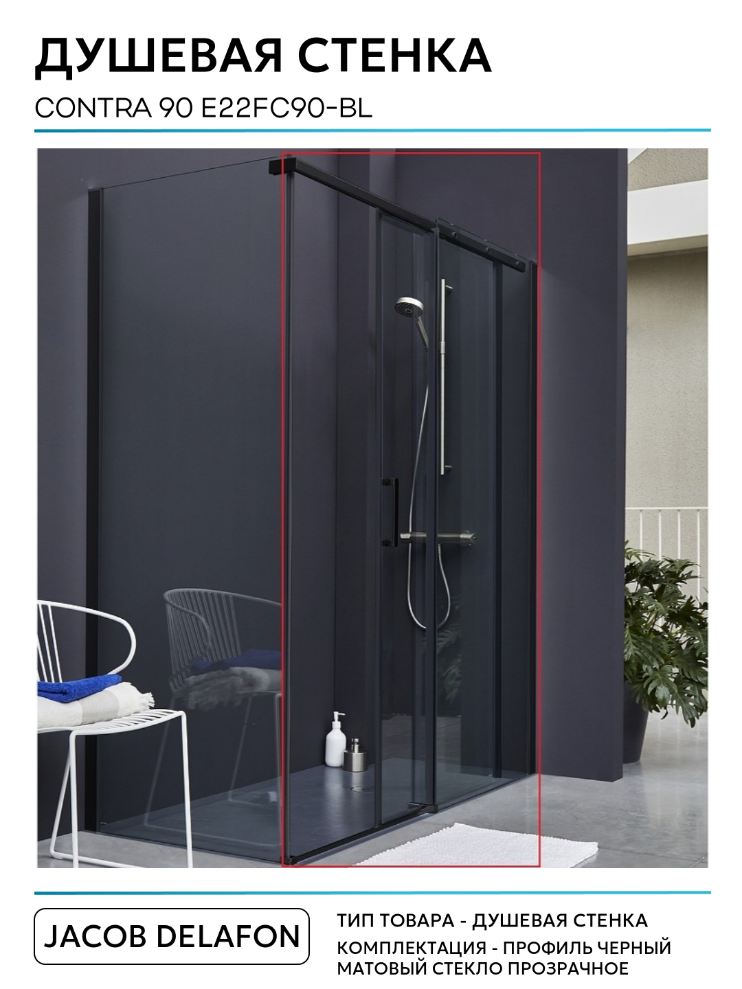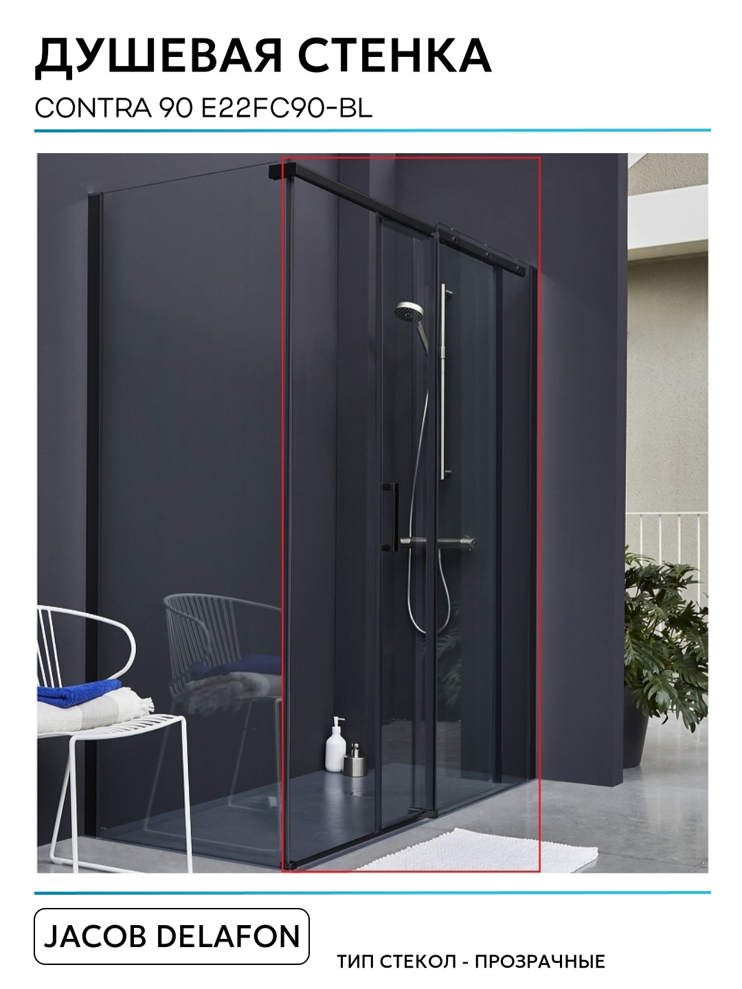 Душевая стенка Jacob Delafon Contra 90 E22FC90-BL профиль Черный матовый стекло прозрачное