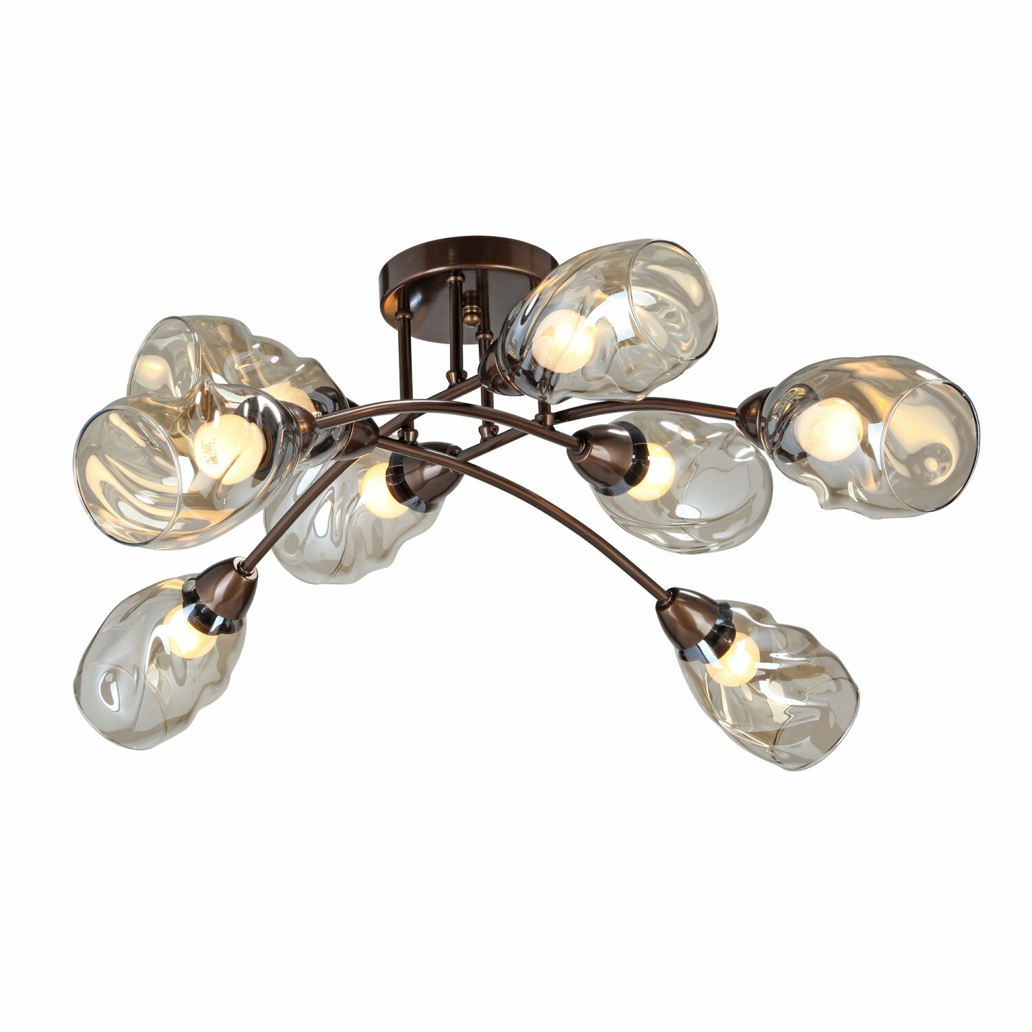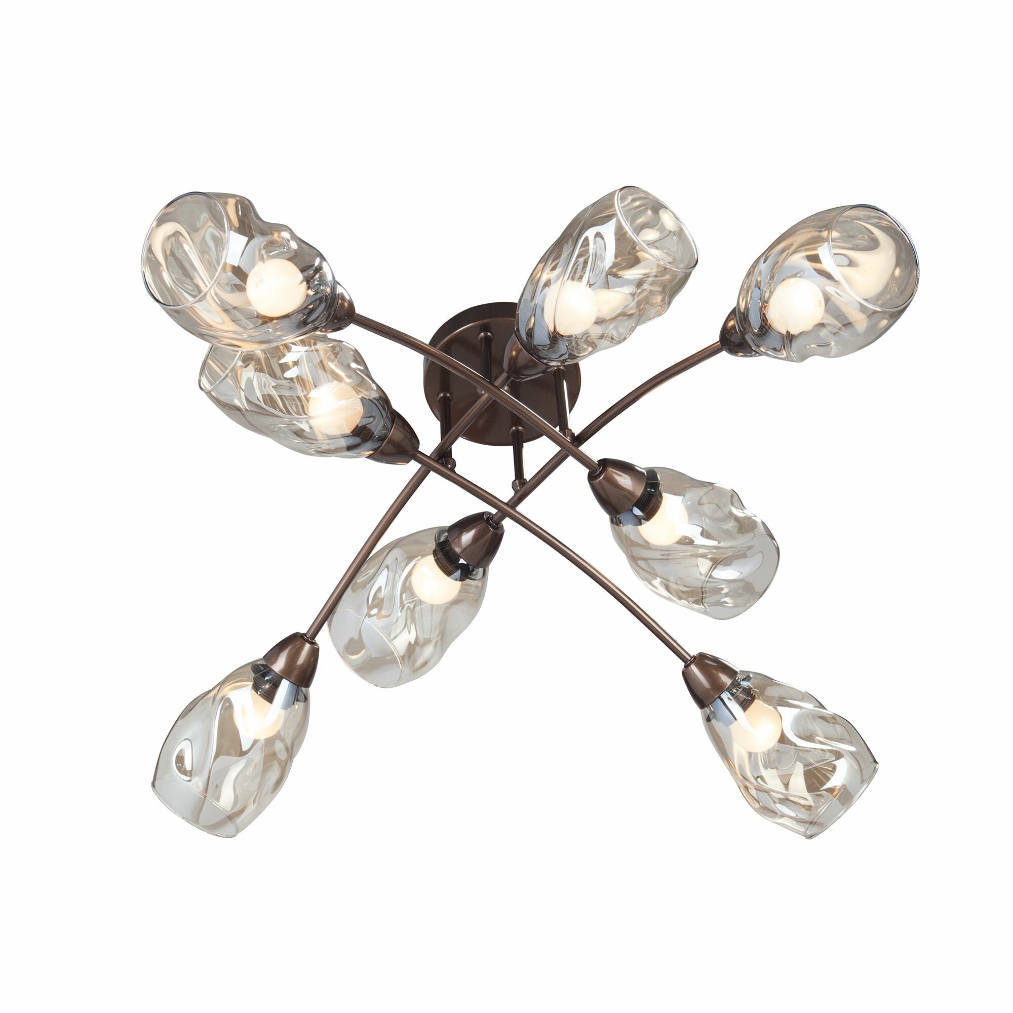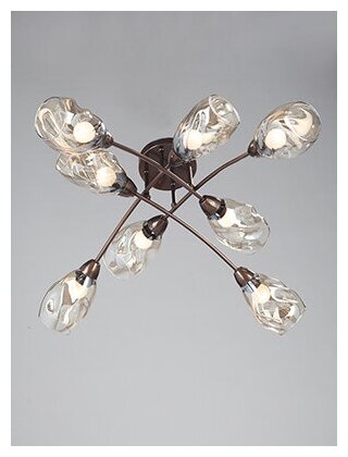 Потолочная люстра будет отлично смотреться в гостиной, спальне, кухне в стиле арт-деко. Люстра имеет 8 плафонов из прозрачного и серого стекла с цоколем 8xE27. Питание от сети 220V, общая максимальная мощность 320W позволяет осветить площадь до 16 кв. м.