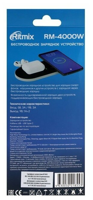 Зарядное устройство беспроводное Ritmix RM-4000W