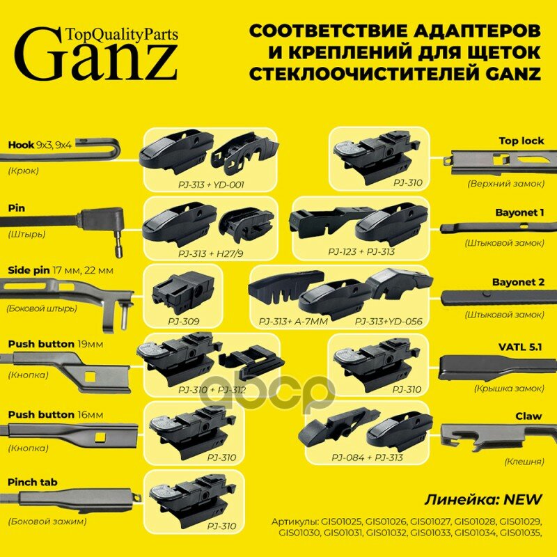 Щетки стеклоочистителя Ganz