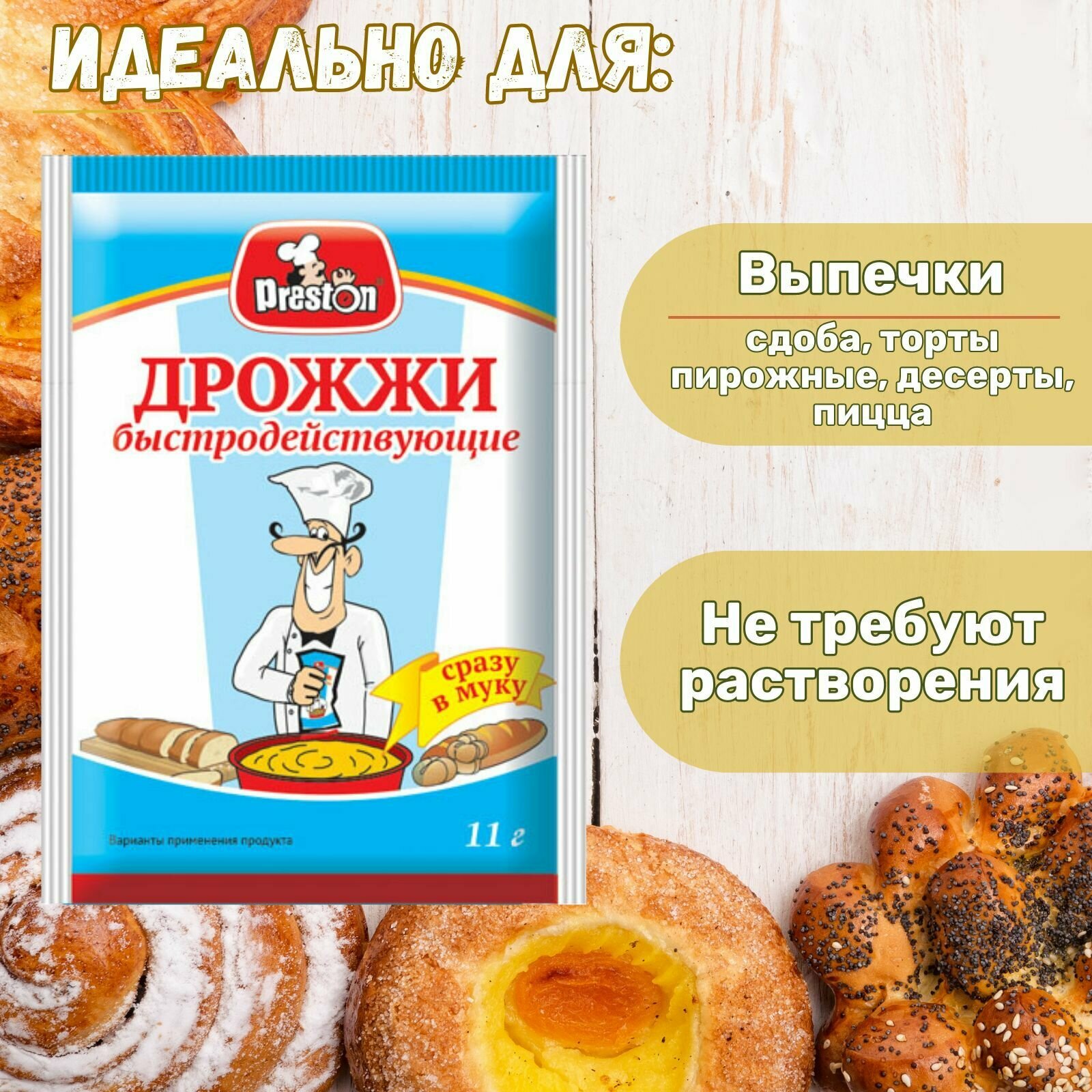 Не секрет, что домашняя выпечка намного полезнее и вкуснее покупной. Традиции домашней выпечки всегда были крепкими в российских семьях. Как приятно из кухни разносится аромат свежеиспеченного пирога, рулета или кекса. Под торговой маркой Pr. Preston производится специальная серия в помощь пекарю и кондитеру. Качественные дрожжи как быстродействующие, так и хлебопекарные, разрыхлитель теста сделают тесто пышным и рыхлым. Дрожжи Pr. Preston превращают долгое приготовление дрожжевого теста в процесс, доставляющий удовольствие. Pr. Preston поможет вам готовить десерты вкусно, ароматно, красиво, по-настоящему празднично.Дрожжи Pr. Preston подходят для опарного, безопарного способов приготовления теста, а также для изготовления замороженных полуфабрикатов, не требуют предварительной активации, сразу могут вноситься в муку по рецептуре, начинают работать даже при малой дозировке, выдерживают низкие температуры, имеют высокую ферментативную активность, придают повышенную формоустойчивость тесту при расстойке, увеличивают объем хлеба на начальном этапе выпекания.