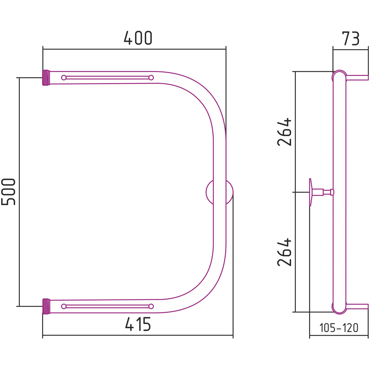 Модель: Стилье П-образный 500х400 00012-5040 Хром