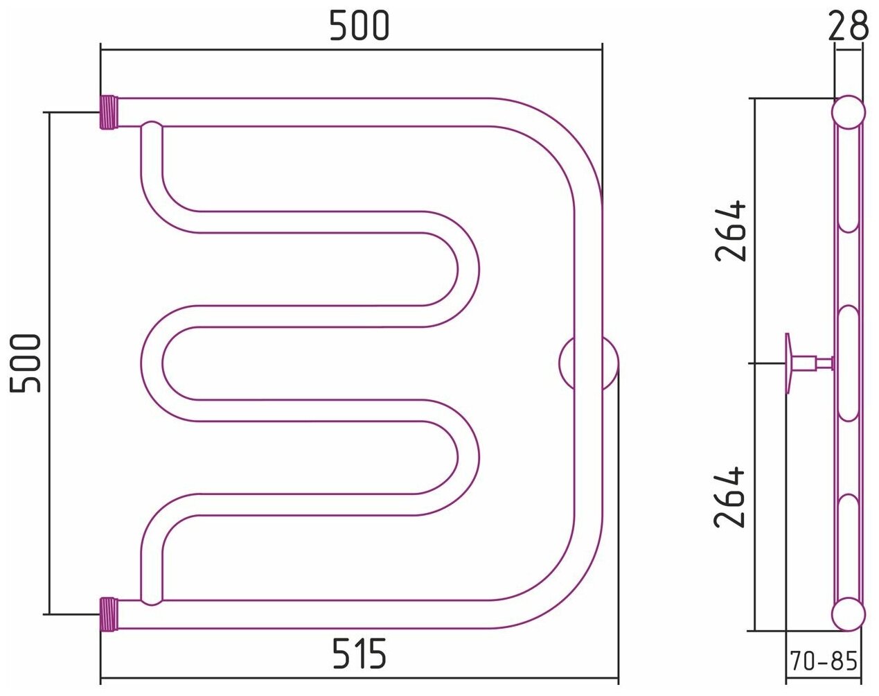 Водяной полотенцесушитель Сунержа Стилье Тандем 500х500 00011-5050 Хром