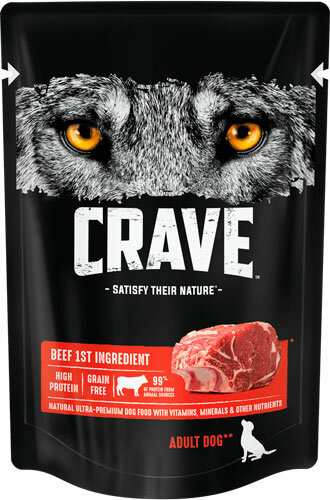 Влажный корм CRAVE™ для взрослых собак, содержащий минимум 99% ингредиентов животного происхождения, вдохновлен естественным рационом собаки. Ингредиент № 1 в нем — настоящее мясо. Это придает питомцу энергию, насыщает белком и поддерживает организм в тонусе.
