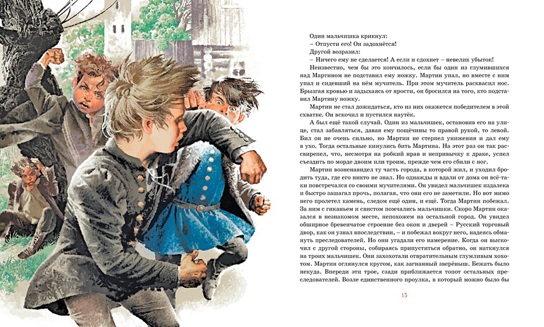 Эту книгу подарили детям за участие в конкурсе. Книгу прочитали на одном дыхании. У автора прекрасный литературный язык, лёгкий слог. Рассказывается о нападении на русский город Юрьев Ливонского ордена, о приключениях двух мальчиков на фоне этих событий. Но книга потерялась. И вот чудо - увидела в Читай-городе, по прекрасной цене, да ещё и с неповторимыми иллюстрациями Владимира Ненова. Купила тут же. Единственное, финал действительно трагичный, поэтому лет с 8 подойдёт, не раньше. Тем более дети разные, сначала прочитайте книгу сами. Но настолько увлекательно и захватывающе написана, в финале - до слез на глазах.