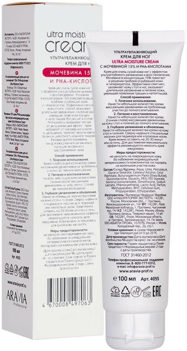 Aravia professional Крем ультраувлажняющий для ног с мочевиной (15%) и PHA-кислотами Ultra Moisture Cream 100 мл (Aravia professional ) (ЭХ99989413269)
