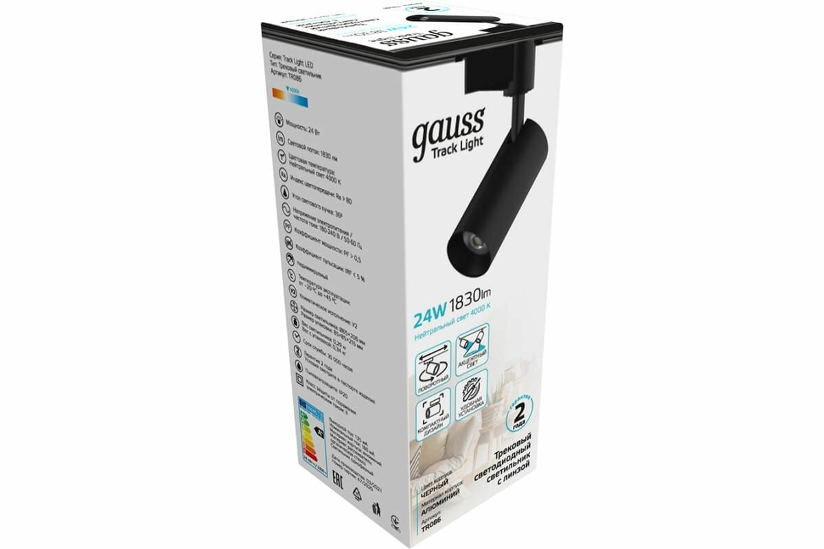 Система трековая Gauss 24Вт 4000K цв.св.:бел.нейт. черный TR086