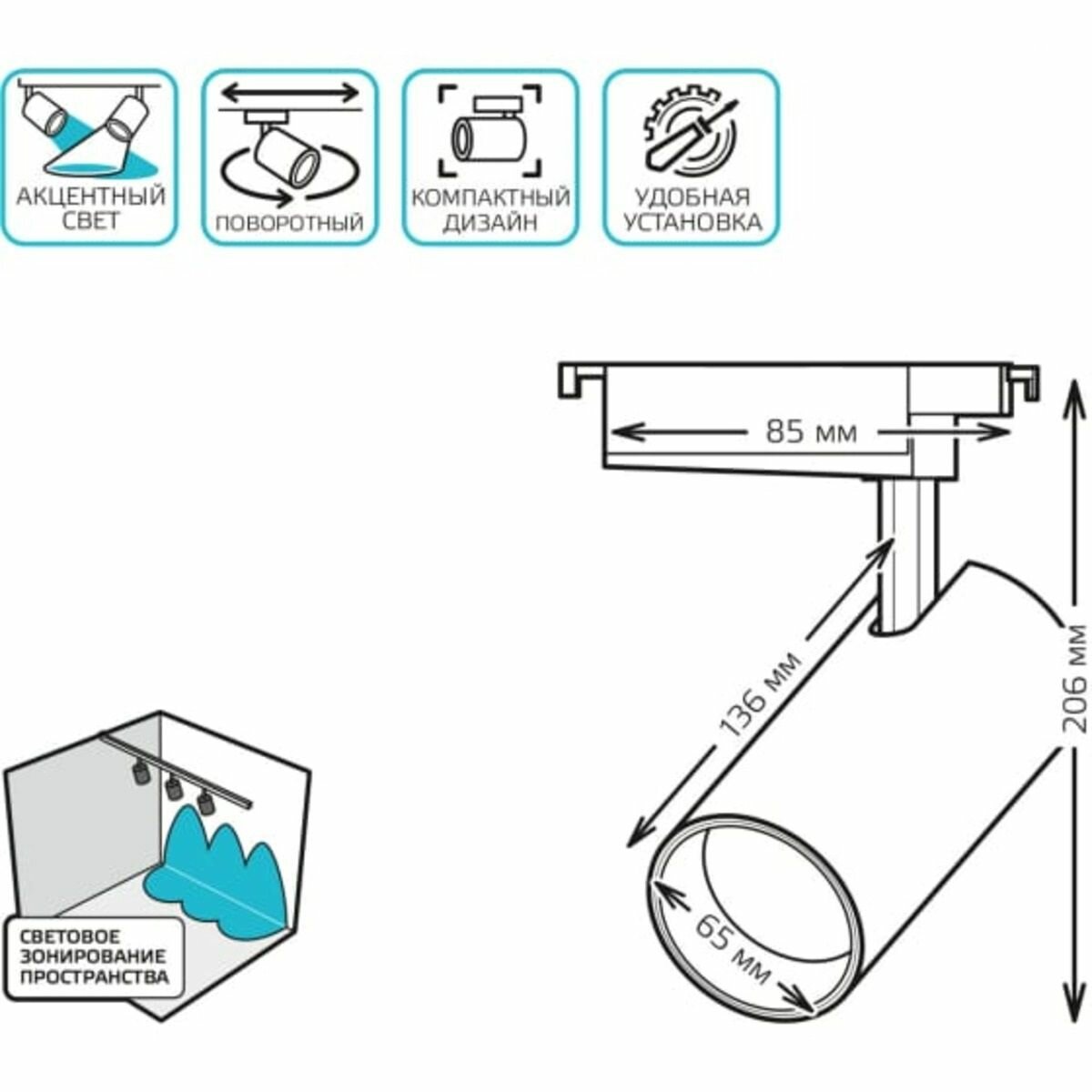 Трековый светильник GAUSS - это отличное решение для освещения жилых и коммерческих помещений. Трековые светильники Gauss обеспечивают широкие возможности для создания различных световых схем. А широкий спектр возможностей регулировки делают устройство универсальным.