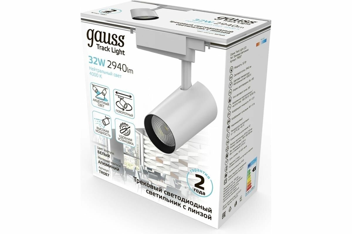 Система трековая Gauss 32Вт 4000K цв.св.:бел.нейт. белый TR087