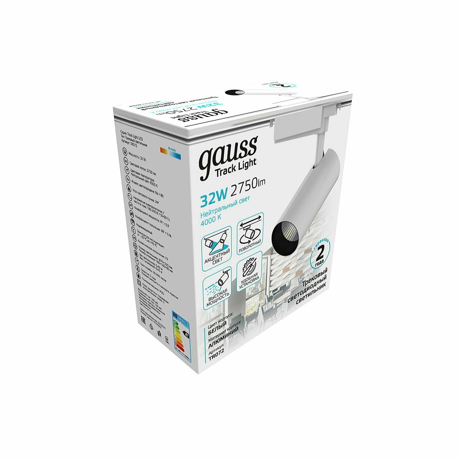 Система трековая Gauss 32Вт 4000K цв.св.:бел.нейт. белый TR072