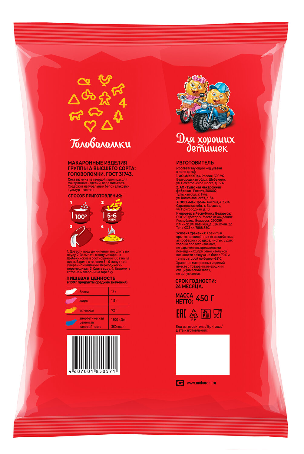 Сервис сравнения цен СкидкаГИД предлагает сравнить цены на товар «Макароны Шебекинские Головоломки 450г»