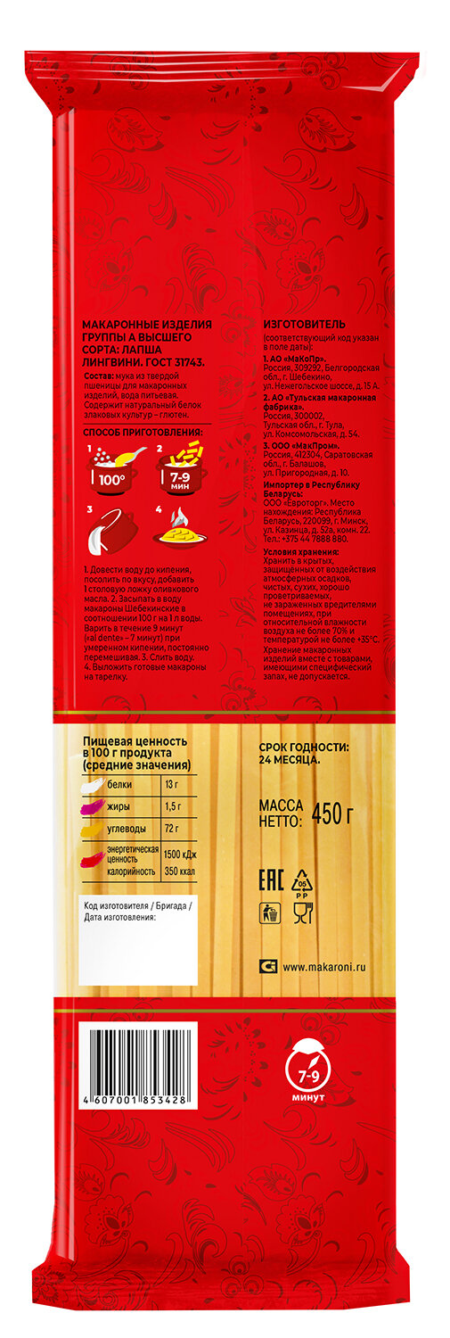 Макароны Шебекенские Лапша Лингвини №011 450г Шебекинские