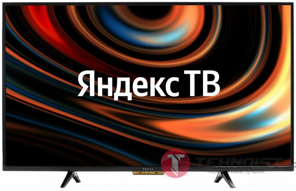LED-телевизор представитель SMART линейки телевизоров Vekta. ОС на базе Android 9.0 PIE, с использованием передовых технологий и более мощного аппаратного обеспечения. Телевизор работает на платформе Яндекс и оснащен встроенным голосовым помощником Алисой. Интерфейс новой платформы Яндекса включает в себя в первую очередь возможность просмотра 200 телеканалов из состава сервиса Яндекс.эфир. Вместе с ними есть интегрированная поддержка онлайн-кинотеатра Кинопоиск HD, и в дополнение к этому ТВ-платформа позволяет запускать приложения кинотеатров Ivi, Okko, TVzavr, Megogo и Tvigle, плюс есть возможность просмотра YouTube. Насыщенное изображение в формате FULL HD (1920х1080).