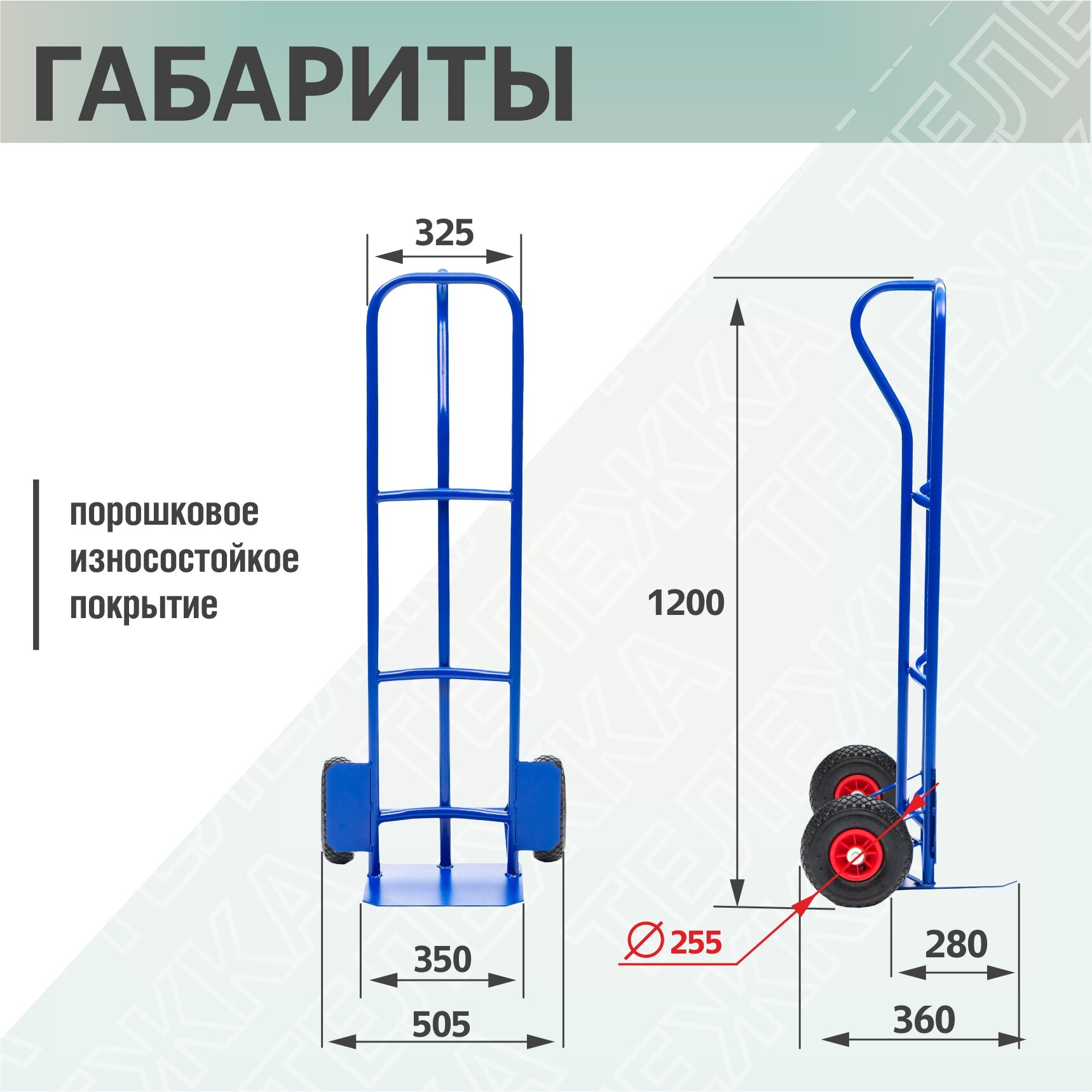 Грузовая 2-х колесная тележка с одной ручкой используется для транспортировки различного малогабаритного груза весом до 200кг. на небольшие расстояния. Каркас тележки изготовлен из металлической трубы диаметром 25мм., толщиной 1,5мм. и покрыт полимерной краской для предотвращения воздействия коррозии. Грузовая площадка размером 350х280мм. обеспечивает устойчивое и надежное положение груза при транспортировке. Площадка выполнена из листа металла толщиной 4мм. Покрытие полимерное. Цвет - синий, шагрень. Тележка комплектуется: метизами для крепления, колесами, изготовленными из вспененного полиуритана, диаметром 255мм.
