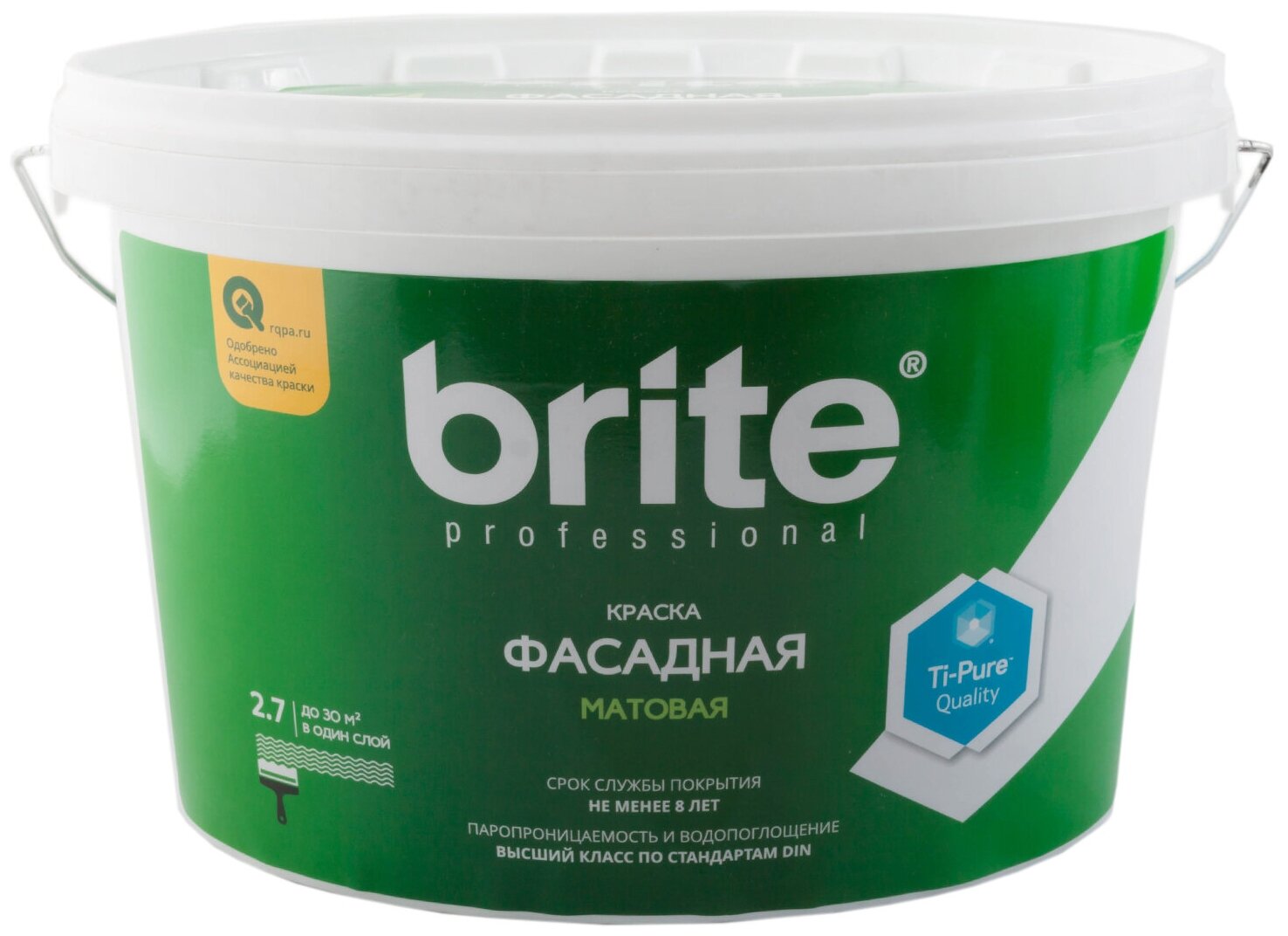 Фасадная краска BRITE Professional белая матовая, база А, 9л (О02235)