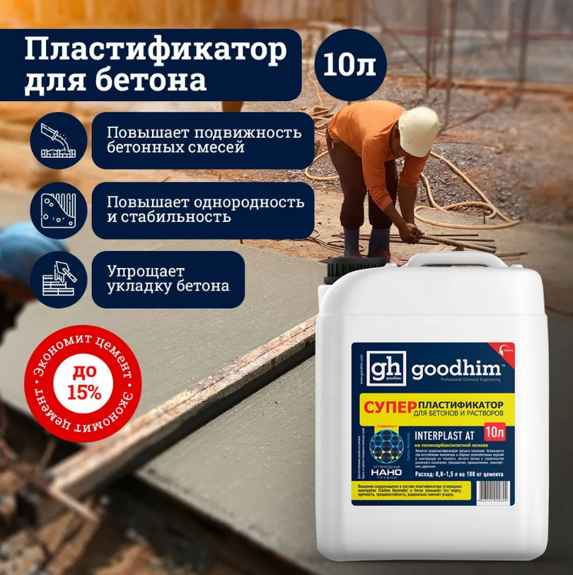 На сегодняшний день товар «Суперпластификатор для бетонов и растворов Goodhim Interplast АТ 10л» можно купить с кешбеком в 1 магазине: Яндекс.Маркет