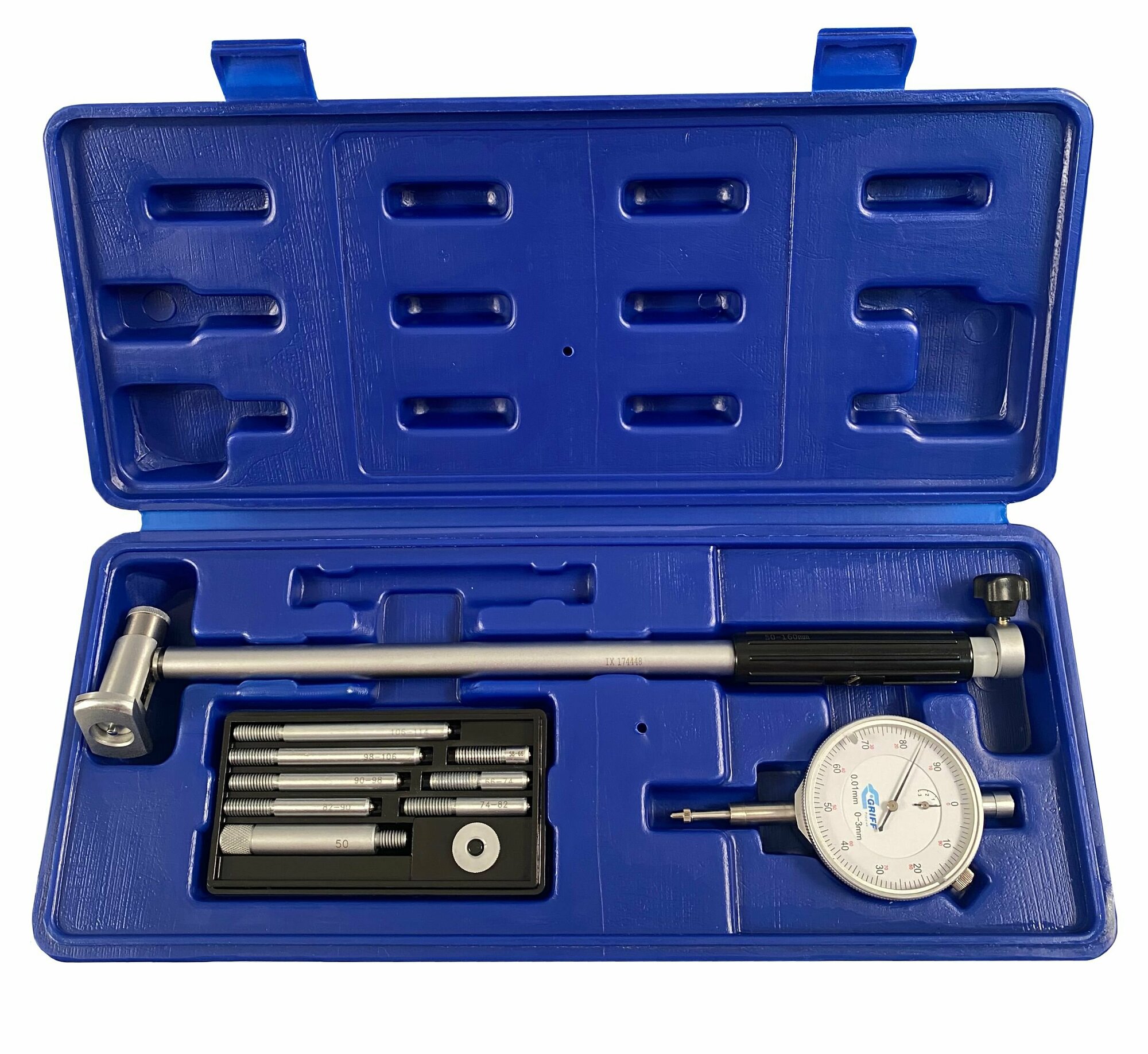 Предназначен для измерения внутренних размеров изделий двухточечным контактом с измеряемыми поверхностями относительным методом. Отсчетное устройство - индикатор часового типа. Диапазон измерений 50.160 мм. Цена деления 0,01 мм. Наибольшая глубина измерения 250мм. Производство Guilin Measuring & Cutting Tool Co, Ltd.
