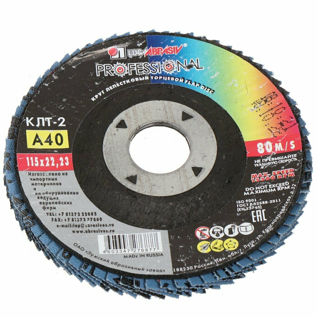 Круг Лепестковый Торцевой (КЛТ) ЛУГА-АБРАЗИВ КЛТ 2 115 Х 22 Р 40 (№40)