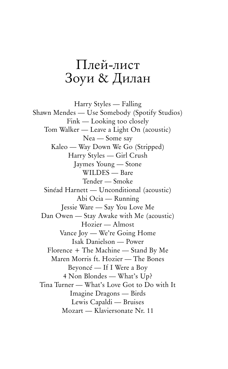 Невероятно трогательная история о Дилане и Зоуи! Завершающая серию Авы Рид книга покорила моё сердце. Это захватывающе! Плейлист в начале книги значительно помог мне прочувствоваться историей, а обложка издания не переставала привлекать моё внимание. Я в полном восторге!