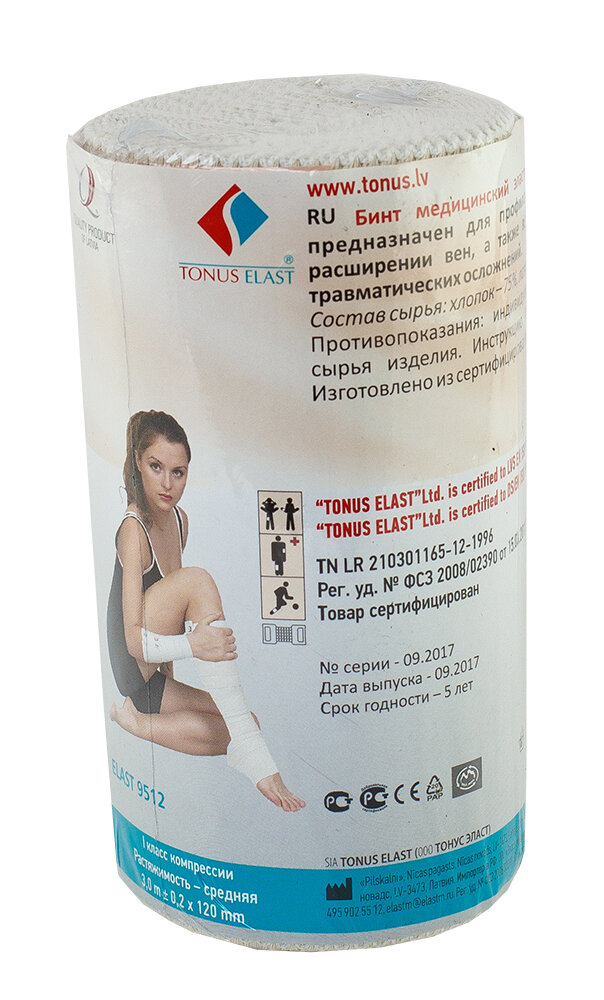 Бинт мед. эласт. ленточный компресс. средней растяжимости Tonus Elast/Тонус Эласт 30м х 120мм (572899)