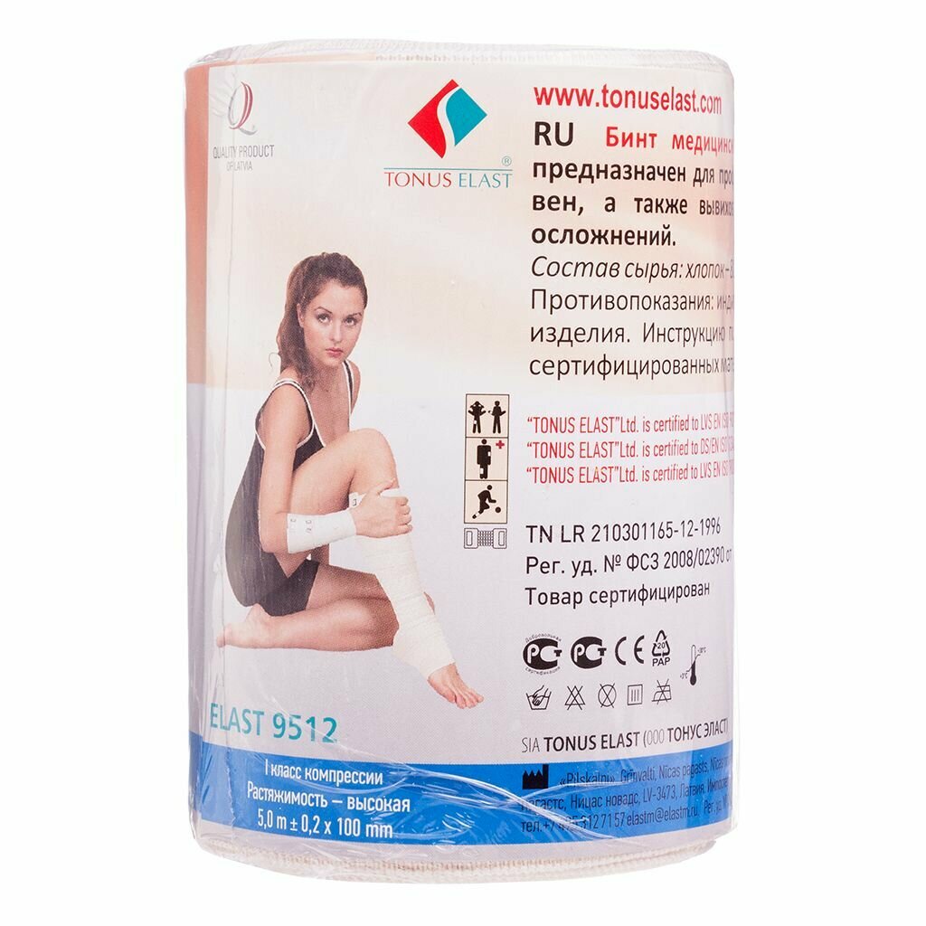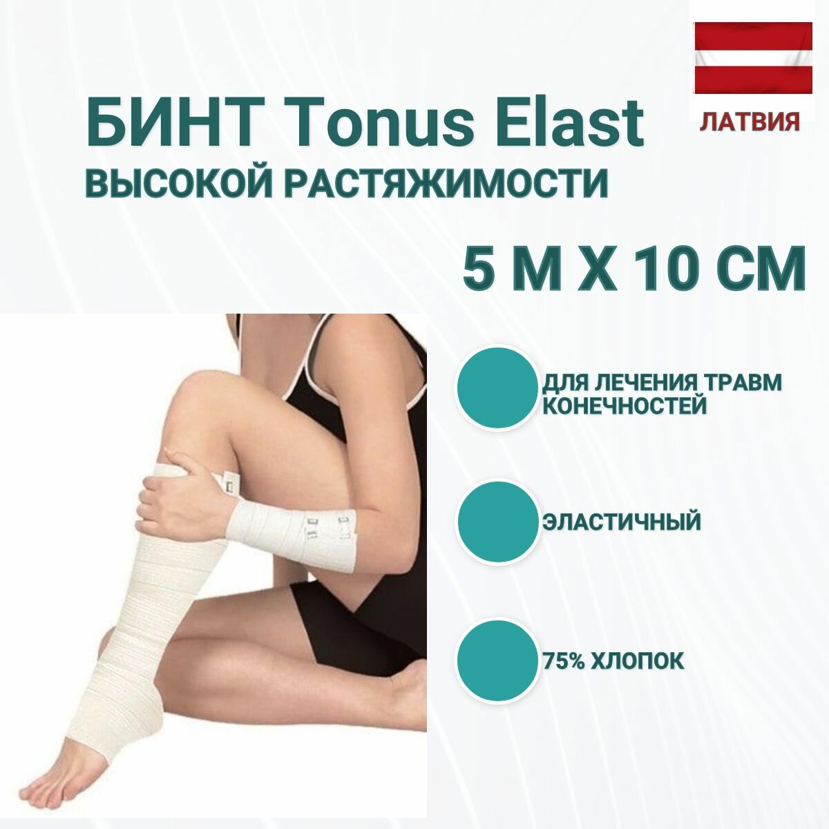 Бинт мед. эласт. ленточный компресс. высокой растяжимости Tonus Elast/Тонус Эласт 5м х 100мм (572899)