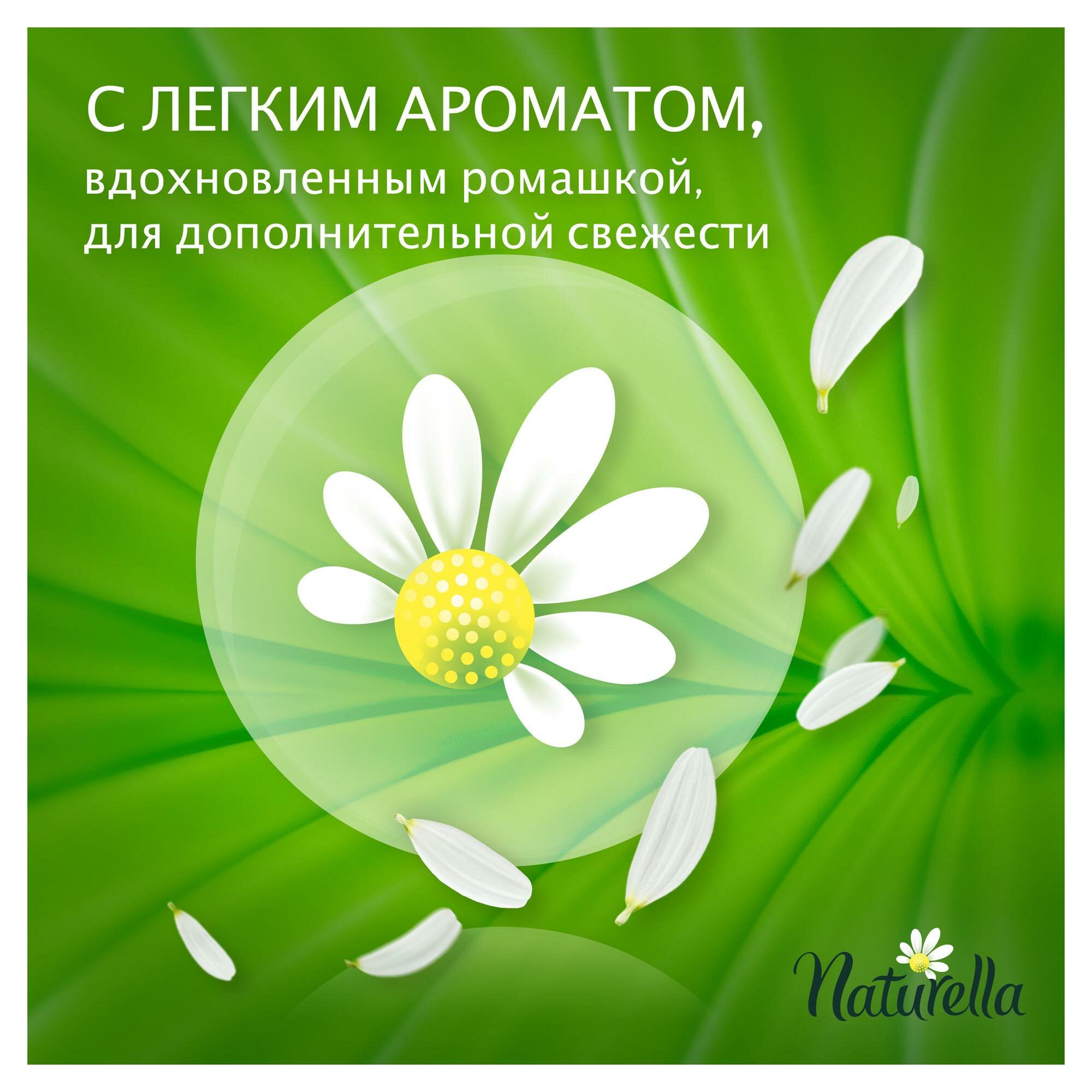 Тонкие и гибкие прокладки Naturella Normal Ромашка защищают вас и дарят вам комфорт, позволяя быть собой. - Ежедневная защита с комфортом: сухие, тонкие, гибкие. - Создателей прокладок, которые пытались добиться ежедневной свежести, вдохновил аромат ромашки. - Дышащие прокладки, которые дарят комфорт. - Одобрены дерматологами. - Технология надежной фиксации с изменяемой площадью клеящегося покрытия надежно закрепляет прокладки. - Нежный контакт с кожей, протестировано дерматологами.