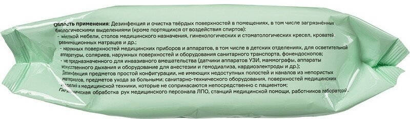 | Материал | Нетканный материал, пропитка (этиловый спирт 65%, ЧАС (дидецилдиметиламмоний хлорид и алкилдиметилбензиламмония хлорид) суммарно 0,2%, молочная кислота, вспомогательные компоненты). |