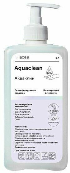 Средство дезинфицирующее бесспиртовой кожный антисептик Акваклин с дозатором Acea/Ацея 1л ООО Ацея (1511786)