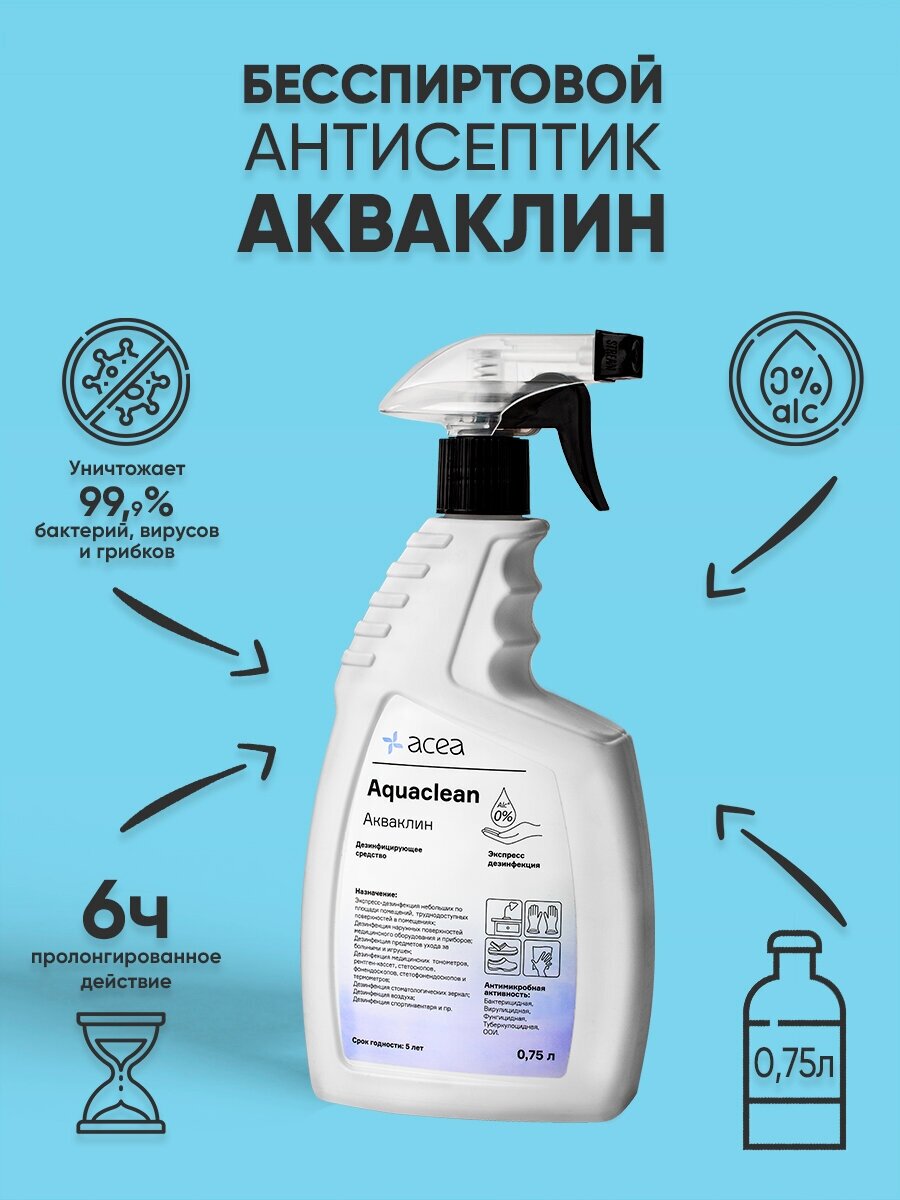 Средство дезинфицирующее бесспиртовой кожный антисептик Акваклин триггер Acea/Ацея 750мл ООО Ацея (1511786)