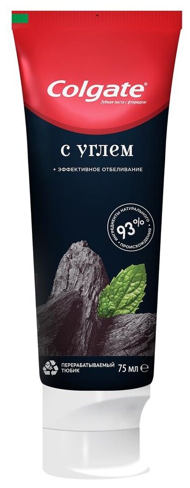 | Особенности | Эффективное отбеливание с 100% натуральным углем, 93% ингредиенты натурального происхождения, перерабатываемый тюбик |