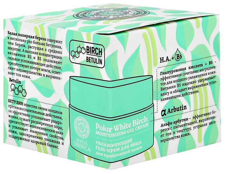 Белая полярная береза содержит в несколько раз больше бетулина, чем береза, растущая в средних широтах. А высокие концентрации витаминов B2 и B5 оказывают сильное успокаивающее действие, препятствуют потере влаги, осветляют несовершенства и выравнивают тон кожи.