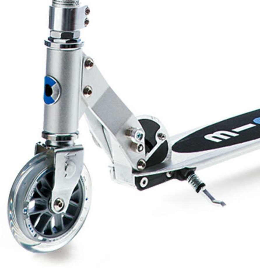 Двухколёсный самокат Micro Sprite серебряного цвета – это идеальный вариант для передвижения по городу. Он имеет небольшой вес в 2,85 кг, прочную эргономичную конструкцию и деку со специальным покрытием против скольжения. Самокат выдерживает вес до 100 кг, поэтому рассчитан детей от 4 лет и взрослых. Регулируемый руль, который фиксируется на высоте от 63 до 95 см, можно легко настроить под рост райдера (если он не превосходит 185 см).