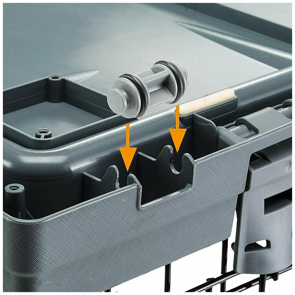 Благодаря специальной дренажной системе и нескользящей поверхности, пластиковое основание позволяет задерживать грязь и остается сухим, обеспечивая комфорт вашей собаке. На дно клетки устанавливаются антискользящие резиновые ножки, которые крепко прижимают ее к полу.