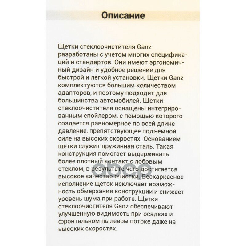 Щетки стеклоочистителя GANZ обеспечивают отличную видимость и безопасность вождения в самых сложных погодных условиях.
