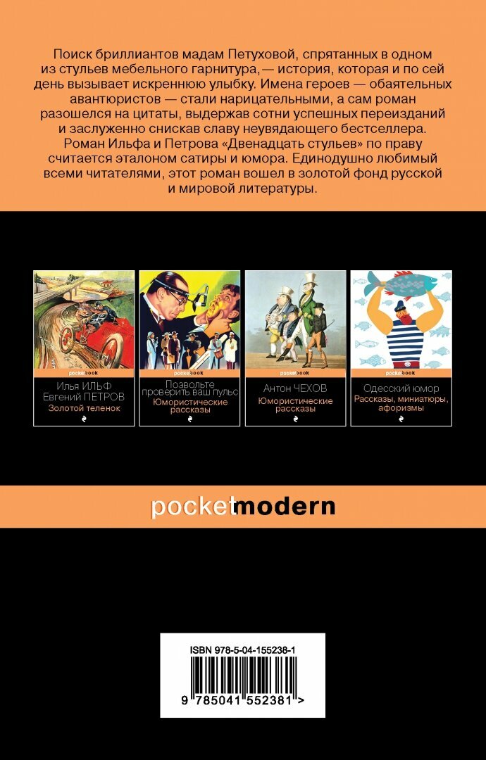 На сегодняшний день товар «Книга: Двенадцать стульев (Ильф Илья Арнольдович, Петров Евгений Петрович); ООО "Издательство "Эксмо", 2021» можно купить с кешбеком в 5 магазинах: book24, Буквоед, Яндекс.Маркет, Читай-город, Onliner BY